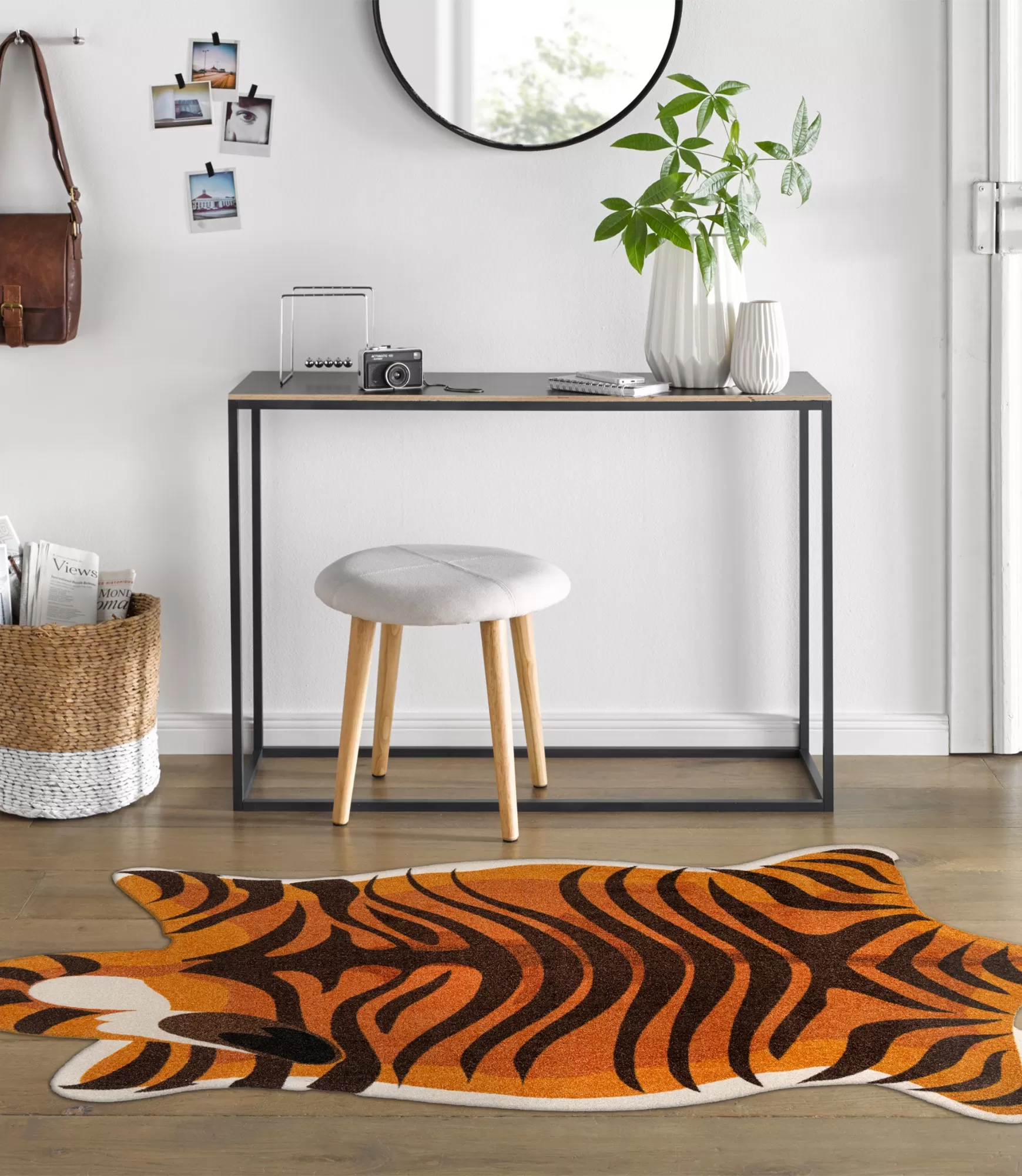 Izstiepts paklājs, kas atgādina atpūtušu tīģeri, papildinās jūsu viesistabu ar safari stila akcentu, pievienojot interesi un eleganci. Šis unikālais dizains rada piedzīvojuma garu un piešķir telpai raksturu, ko viegli var savienot ar citiem safari tēmas elementiem. Šāds paklājs ne tikai piesaistīs uzmanību, bet arī pievienos šarmu jūsu interjeram, radot neaizmirstamu atmosfēru, kas iedvesmota no dabas.