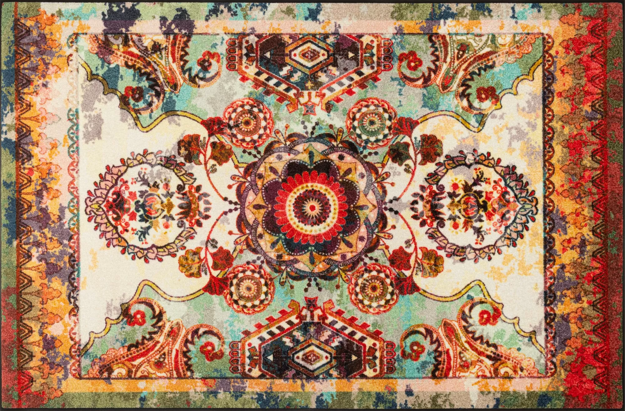 Mazgājams paklājs viesistabai ar austrumniecisku ornamentālu dizainu ir lielisks risinājums, lai jūsu mājas interjeram piešķirtu siltuma un mājīguma atmosfēru. Krāsu paletē dominē sarkanīgie un brūnie toņi, kas piešķir telpai dzīdīgumu un eleganci. Rakstainais dizains lieliski izceļas viesistabā, radot harmonisku un izteiksmīgu vidi.