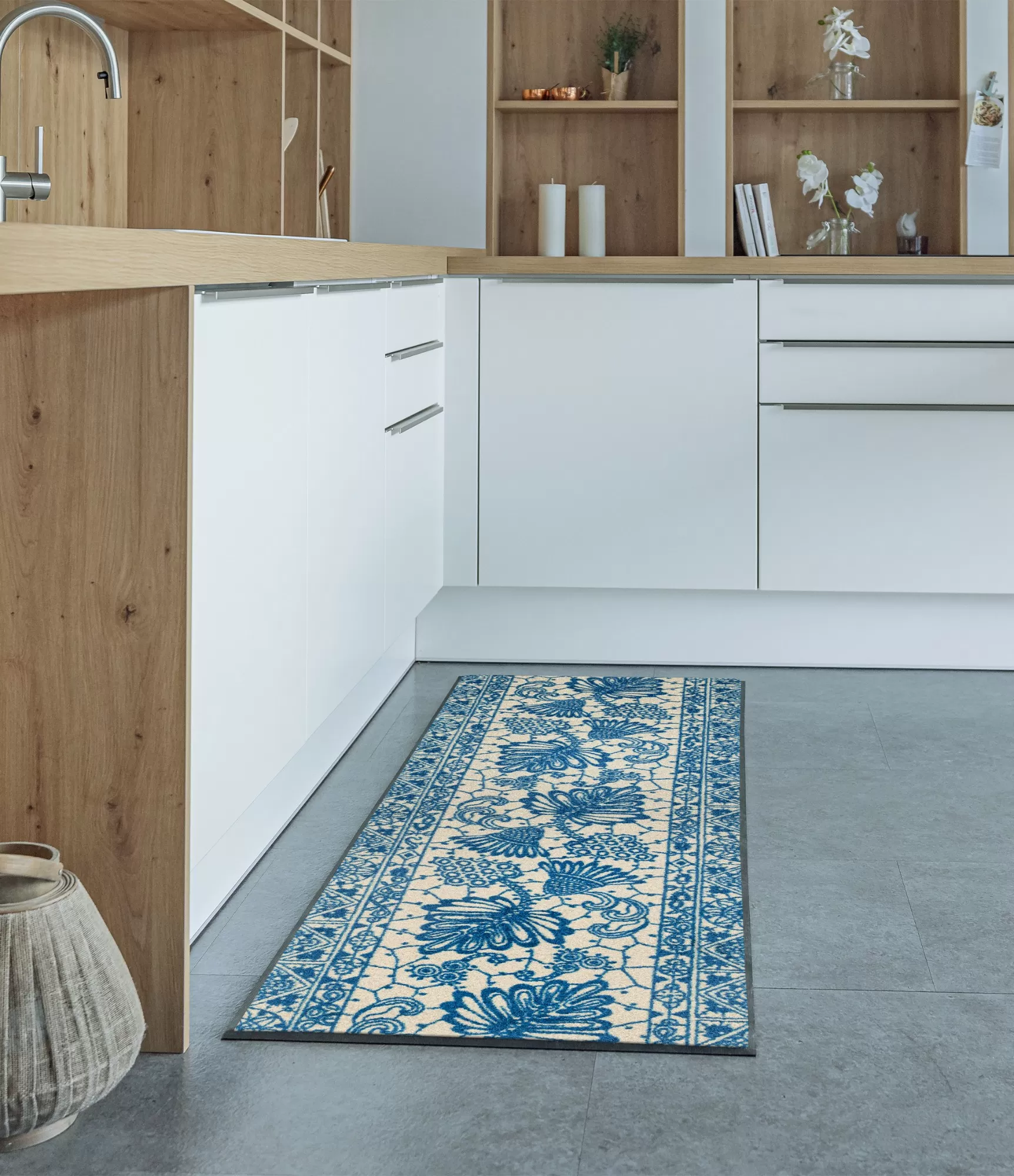 Stilīgs rakstains, mazgājams paklāja ceļš zilos toņos piešķir interjeram eleganci un svaigumu. Tās smalkie raksti un zilgani nokrāsas rada harmonisku, uzkrītošu izskatu, kas lieliski sader ar dažādiem mājas interjera stiliem. Šis paklāja ceļš ir ne tikai skaists, bet arī praktisks – to ir viegli mazgāt, tāpēc tas vienmēr paliks tīrs un kārtīgs. Izgatavots no augstas kvalitātes materiāliem, tas nodrošina izturību un ilgstošu lietošanu pat intensīvas satiksmes vietās. Šāds paklāja ceļš ir ideāla izvēle tiem, kas novērtē stilu, komfortu un praktiskumu.