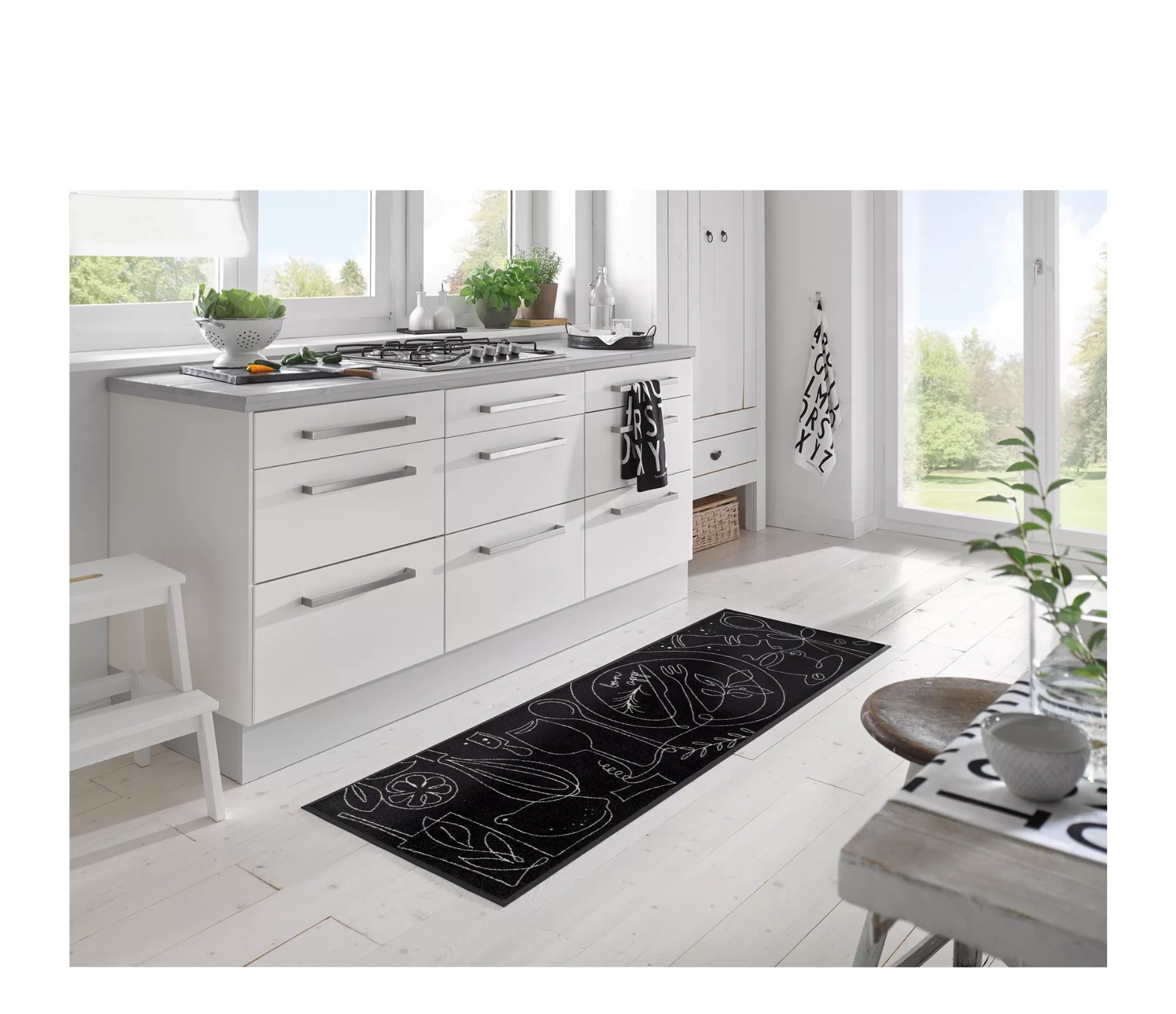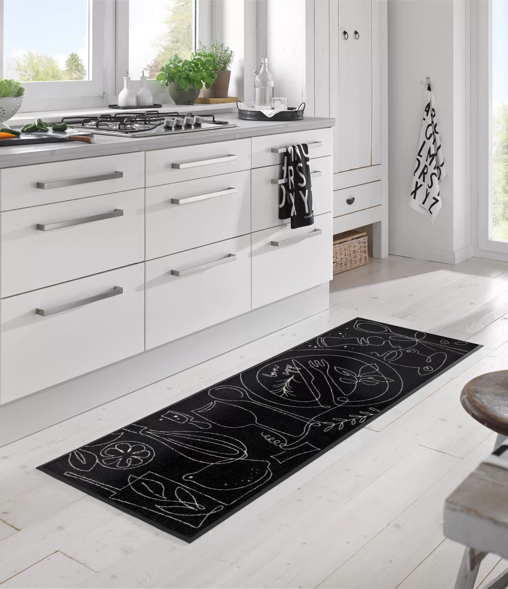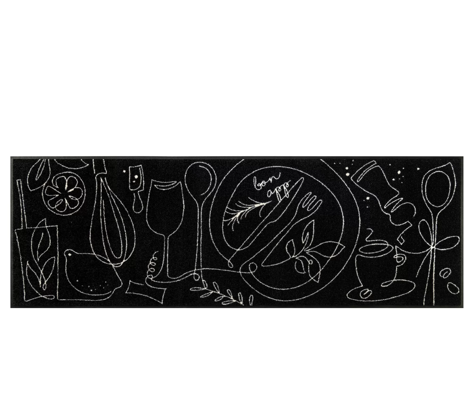 Klasisks melns paklājs ar baltajiem motīviem—ideāli piemērots tiem, kuri novērtē tīru un izteiksmīgu interjeru. Augsta kvalitāte, laba cena un unikāls stils. Moderni paklāji virtuvei.