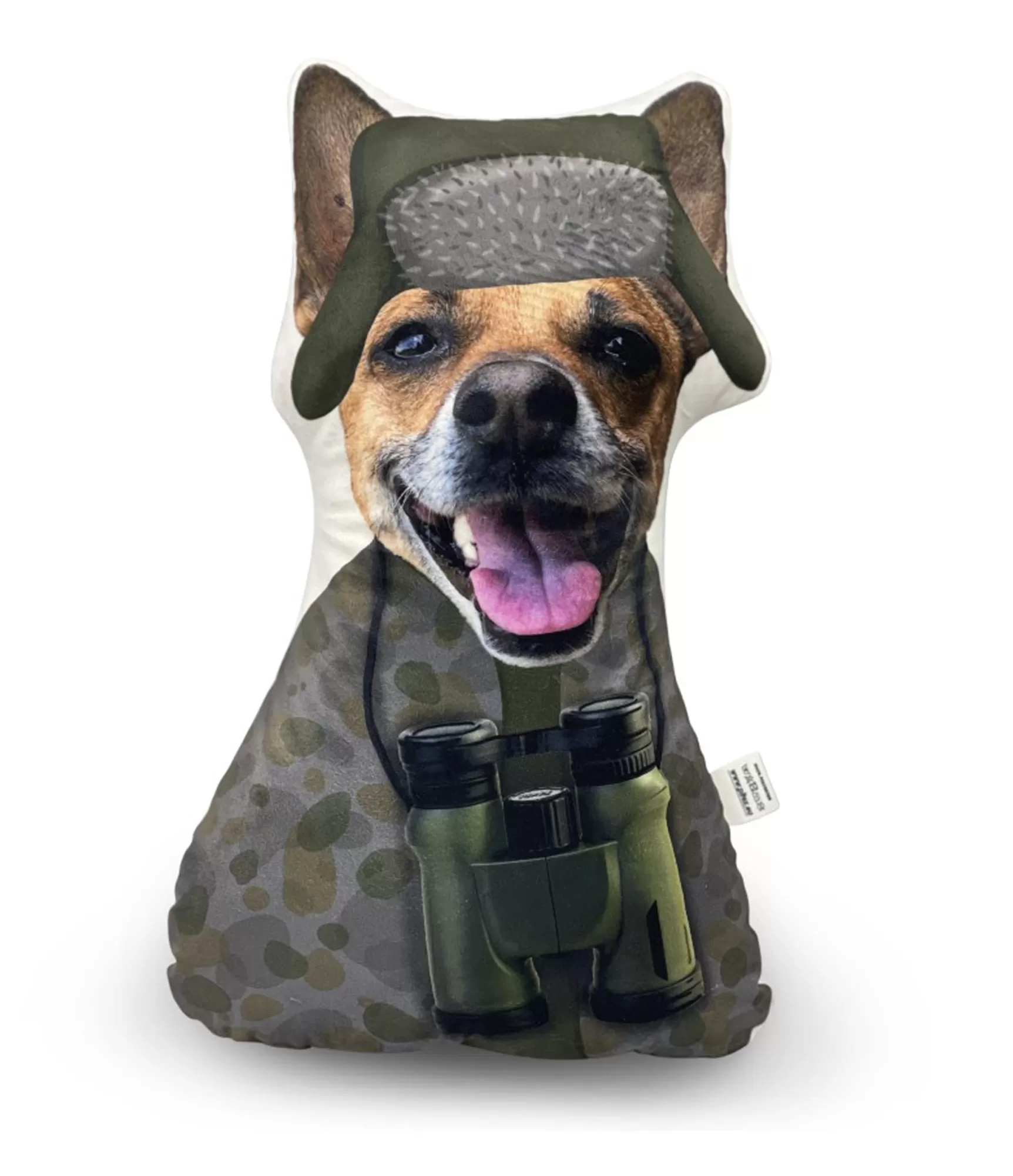 Personalizēts spilvens ar mājdzīvnieka galvas attēlu.