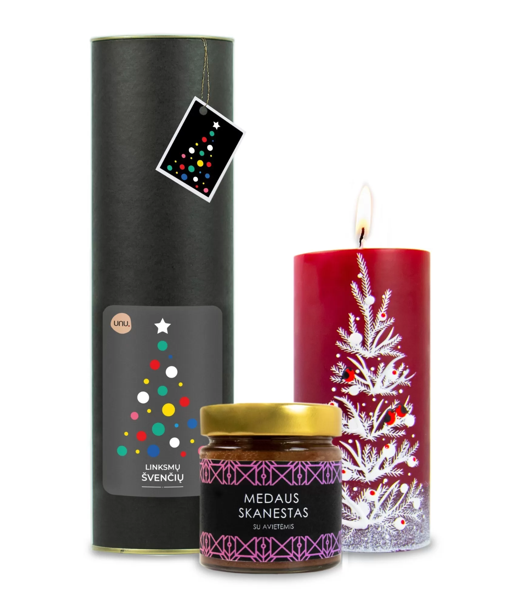 Š ir Ziemassvētku dāvanu komplekts – tā ir lieliska izvēle, ja vēlaties radīt siltu, mājīgu un romantisku noskaņu. Ar rokām darināta svece un gardēdis lietuviešu medus gardums ar avenēm ir ne tikai praktiskas, bet arī simboliskas dāvanas, kas novērtētas ar savu daudzpusību un tradīciju kopšanu. Šī dāvana ir piemērota gan vietējiem klientiem, gan ārvalstu partneriem kā laipns žests, kas pauž jūsu uzņēmuma vērtības.