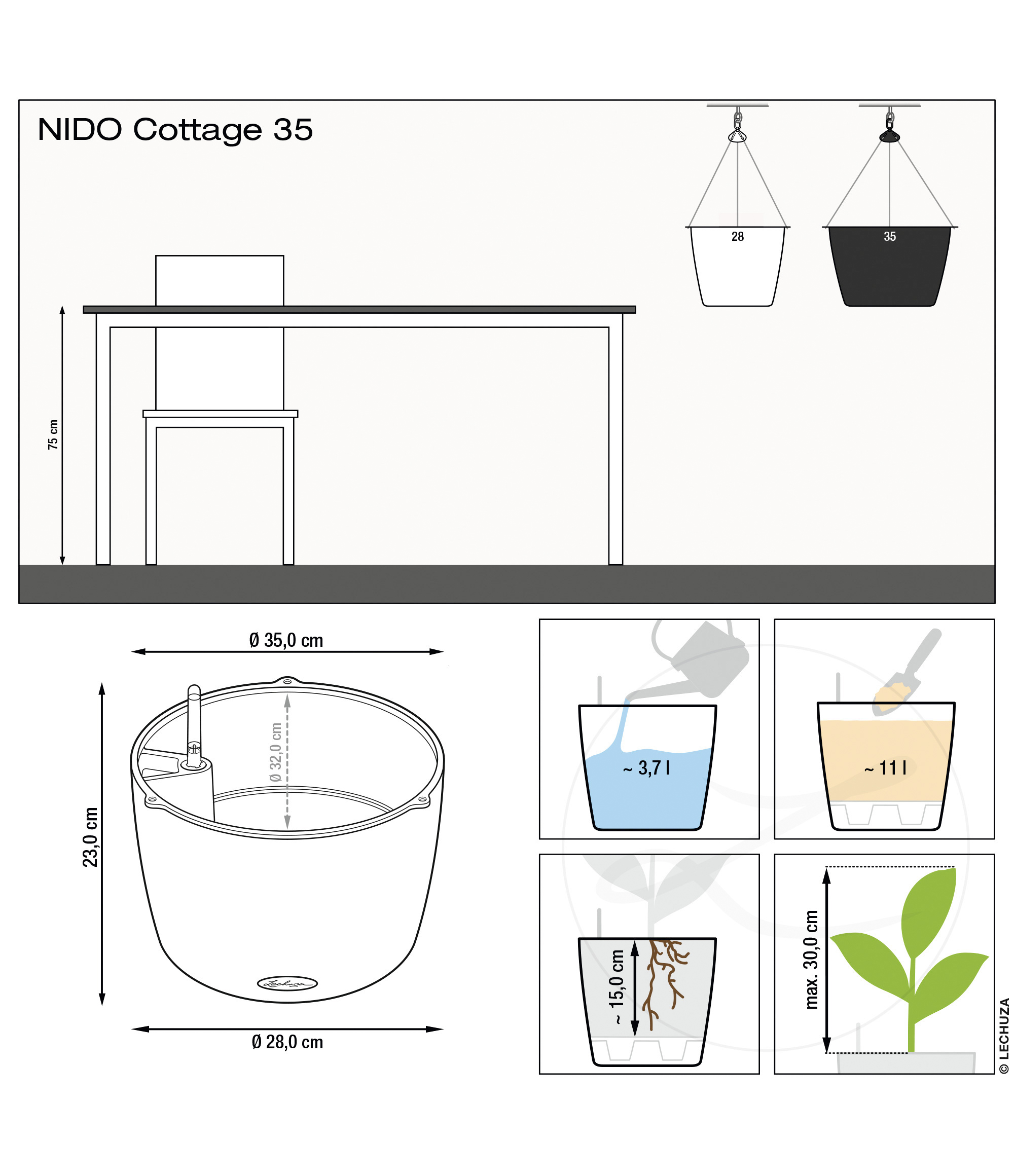 LECHUZA podu laistīšanas sistēma parūpēsies par jūsu augiem līdz pat 12 nedēļām. Nodrošina, lai augs saņemtu pareizo ūdens un barības vielu daudzumu optimālai augšanai.