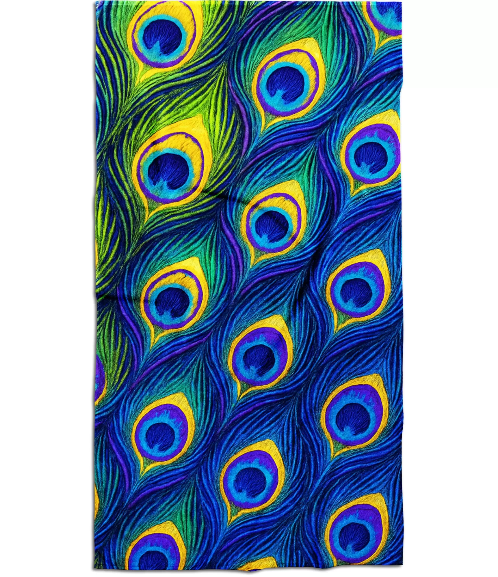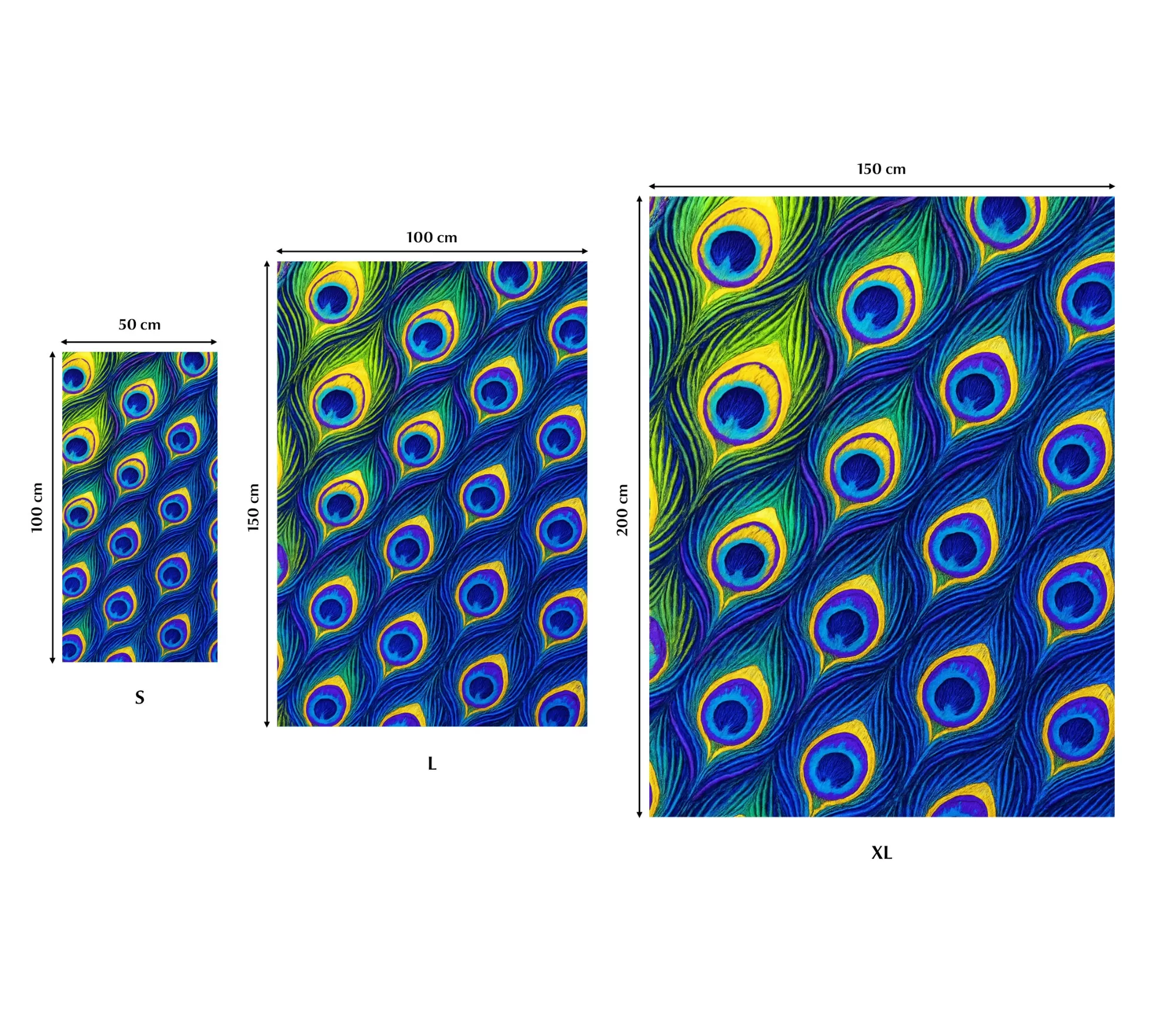 Dizains, ko iedvesmojušas pāva spalvas uz šrokasš rada ārkārtīgi intensīvu vizuālo pieredzi, kas izceļas pat starp spilgtākajiem vasaras atribūtiem. Šķiet, ka katra spalva ir dzīva – no dziļi ziliem un purpursarkaniem līdz spilgti zaļiem un vīstošiem dzelteniem. Tas nav vienkāršs motīvs – tas ir mākslas darbs, kas pārnests uz funkcionālu objektu, kas jūs iepriecinās katru reizi, kad to iesaiņosiet.