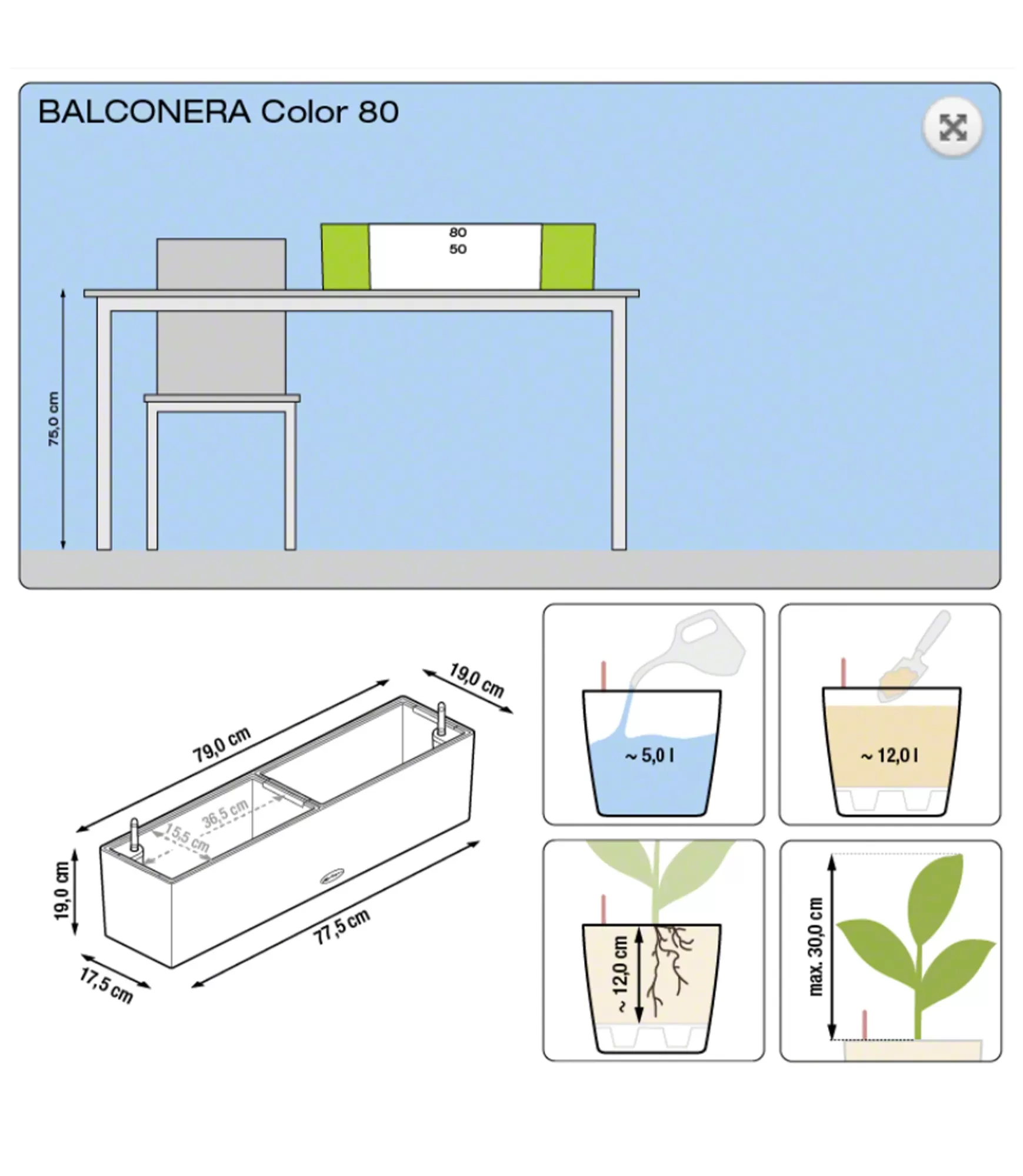Puķu kaste Lechuza Balconera Color 80