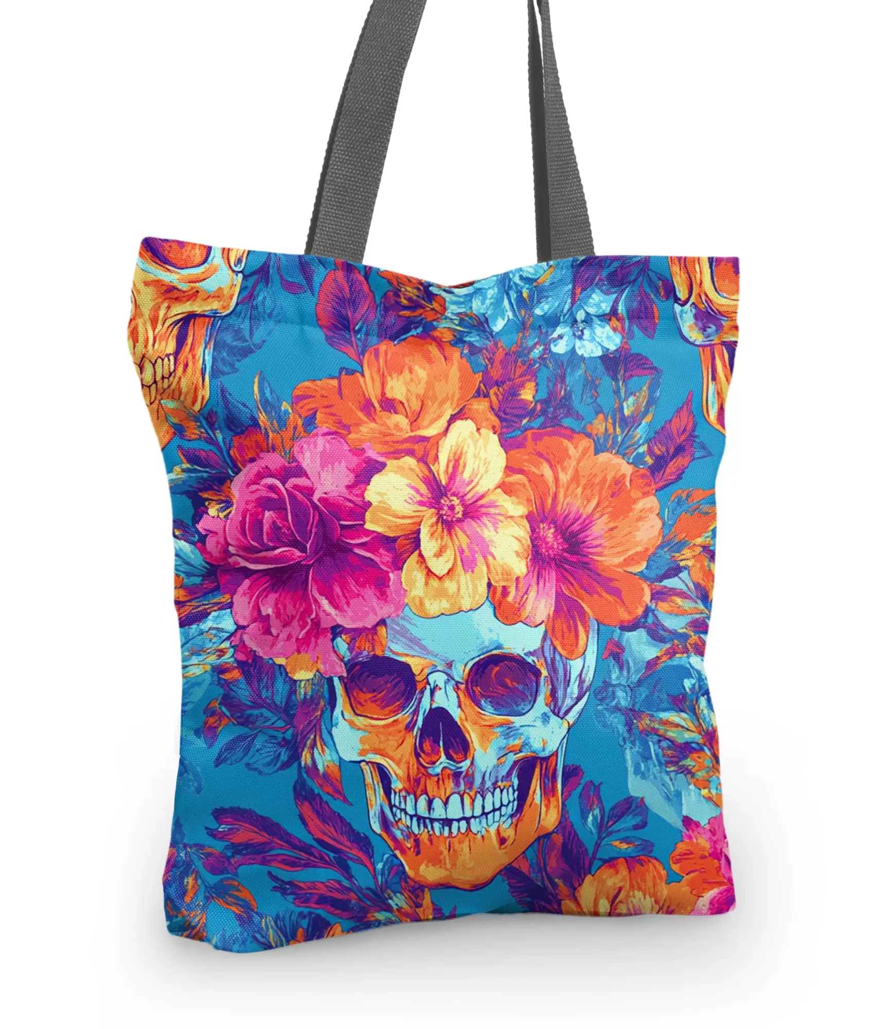 Ši rokassomiņa – tas nav tikai aksesuārs, tas ir vizuāls paziņojums. Tajā – kontrastu harmonija, kur satiekas dzīve un tās trauslums, skaistums un īslaicīgums, krāsas un forma. Krāsu eksplozija – no dziļi blūza un tirkīza līdz oranžiem un fuksijas ziediem – veido iespaidīgu, gandrīz noslēpumainu galvaskausa formu. Bet šeit nav baiļu – tikai šventiška klusums, es domāju un šsmaids cauri krāsām.