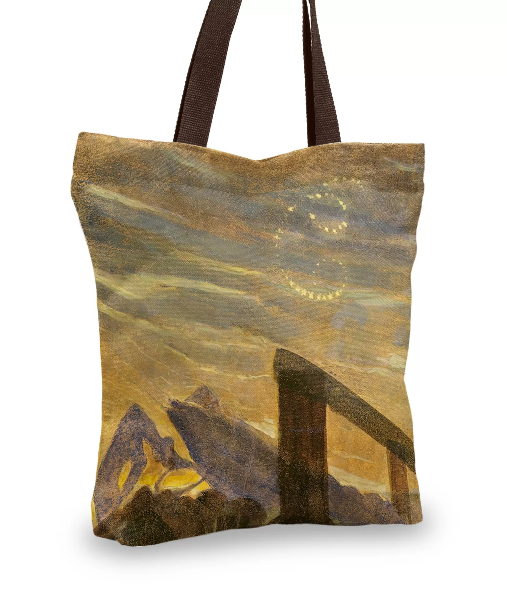 Rankšs var kļūt par gleznu un gleznu – ar klusu skatienu sevī. Sievietes rokassomiņa ar apdruku, kas radīta pēc M. K. Čiurlioņa darba "Saule ir vēža zīmē", paver jūras burzmai un sapņu loģikai. Viņa elpo lēnajā ūdens ritmā, saplūstošajā horizontā, kur bura, krasts un saule saplūst vienā klusā melodijā. Krāsas šeit – apslāpēts un vienlaikus vīstošs: brūngani dzelteni krasti pārvēršas zilos ūdeņos, un sabiedrība kļūst nevis par objektu, bet gan par valsti.