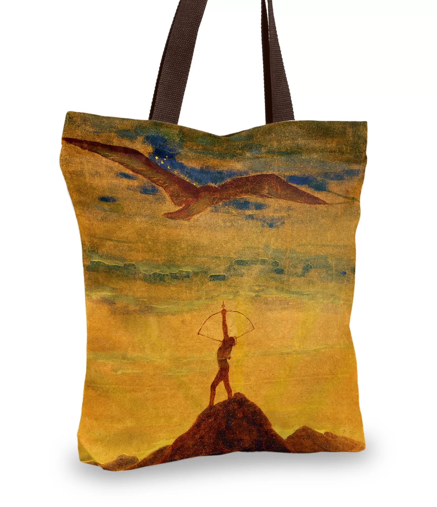 Kad debesis kļūst par skatuvi un zvaigznēm — aktieriem, ienāk Saule, ceļojot pa Šauļa zīmi. M. K. Čiurlioņa gleznu rotātās rokassomas dizains ir ne tikai zodiaka simbols, bet arī dziļa estētiskā dzīve. Uz sievietes rokassomas redzam vienu vienīgu kalnu, kurā iesprūdusi zelta bulta, un upuris gatavo. viņa — sarkana kvēlojoša saule, kā burvis. Virš Ap visu peld sapņaini mākoņi, kas ne tikai piepilda debesis, bet arī piešķir visai ainai noslēpumainības un neierobežotas brīvības sajūtu. Tas nav dekors — tas ir ieskats pasaulē, kurā intuīcija un iztēle ir vērtības.