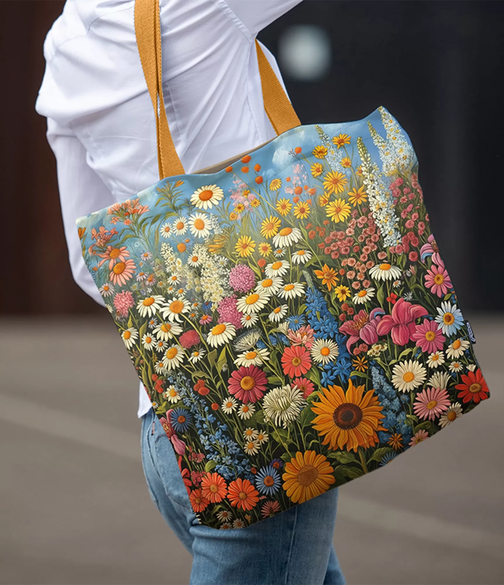 Ziedu pļavas rokassomiņa – krāsaina dāvana sievietei.