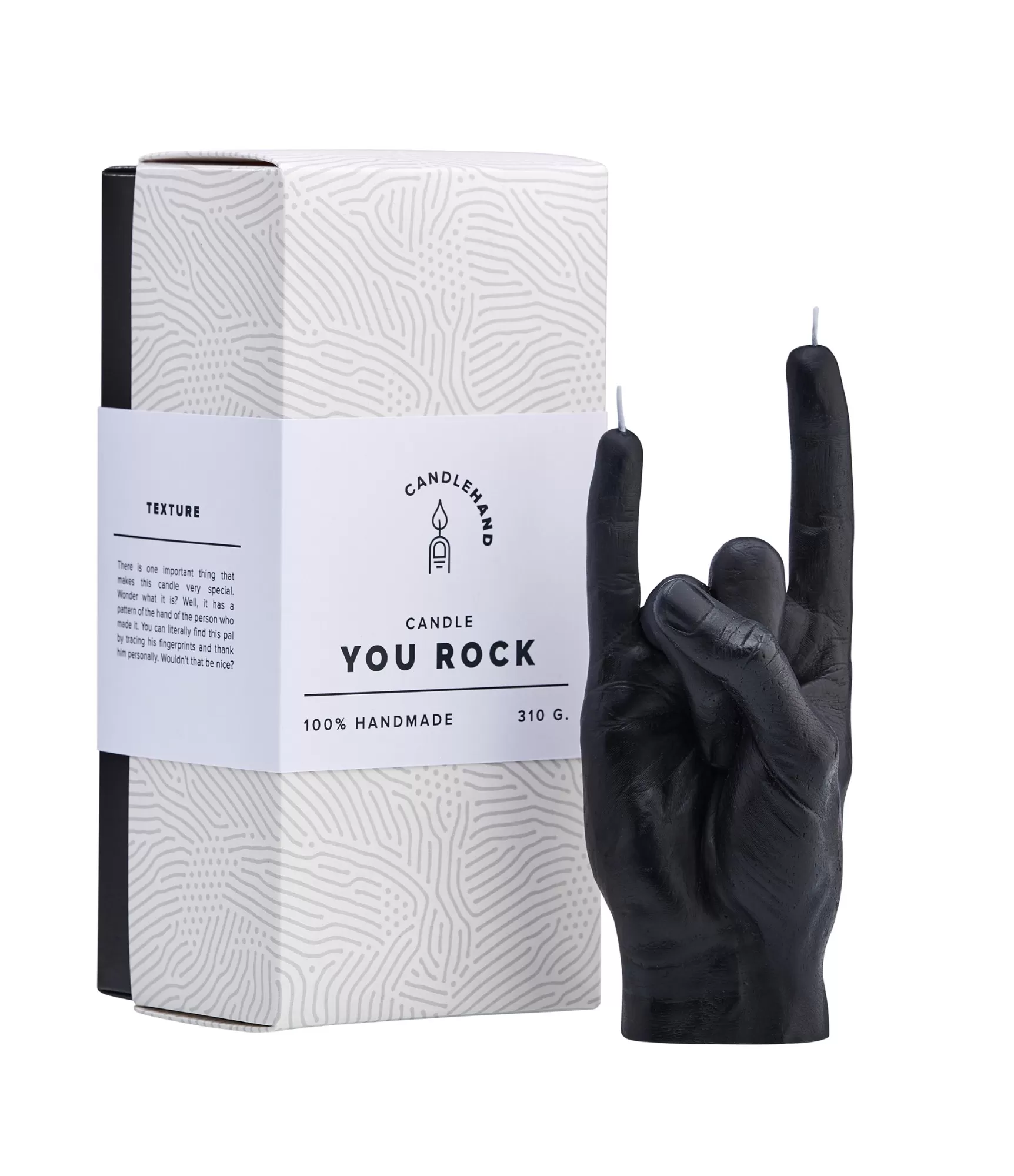 Roku darbs svece You Rock Black – We Will Rock You – trāpīgi un ar stilu.