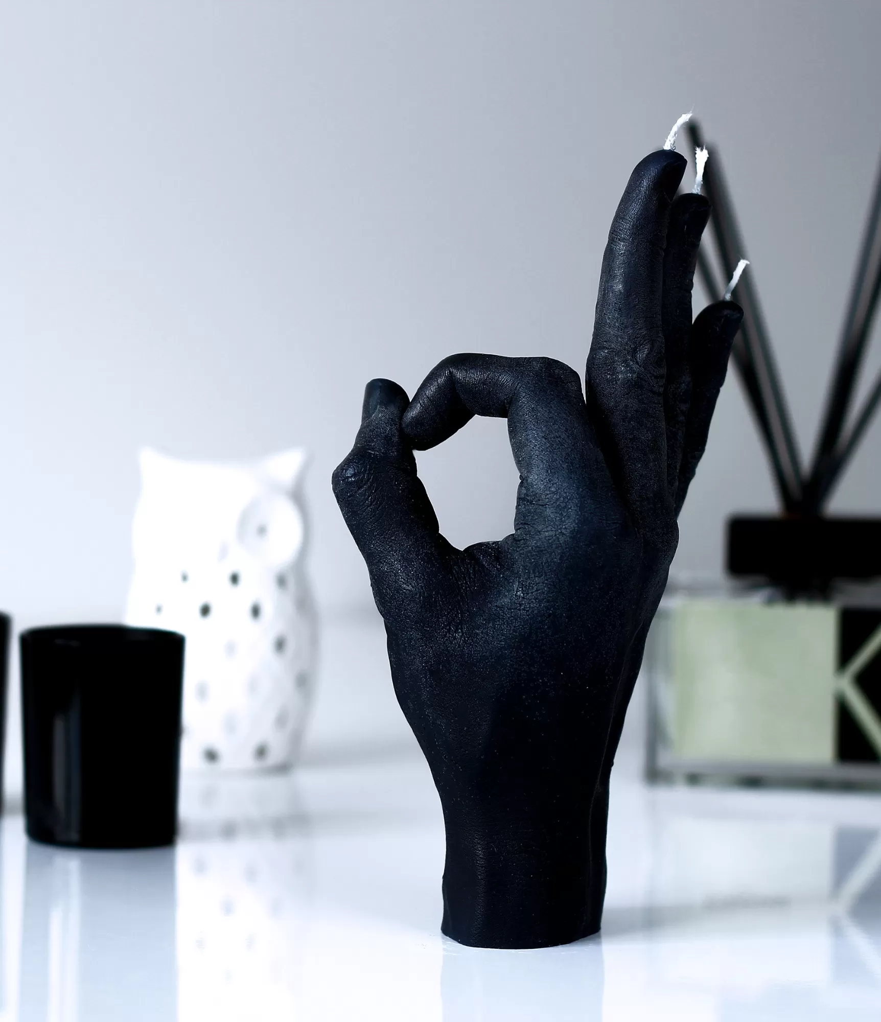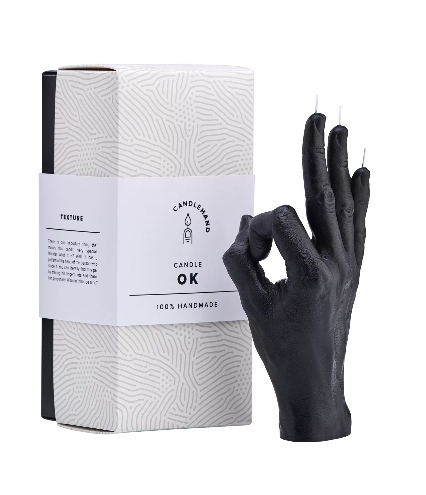 Ar rokām darināta svece OK Black – viss ir SUPER labi!