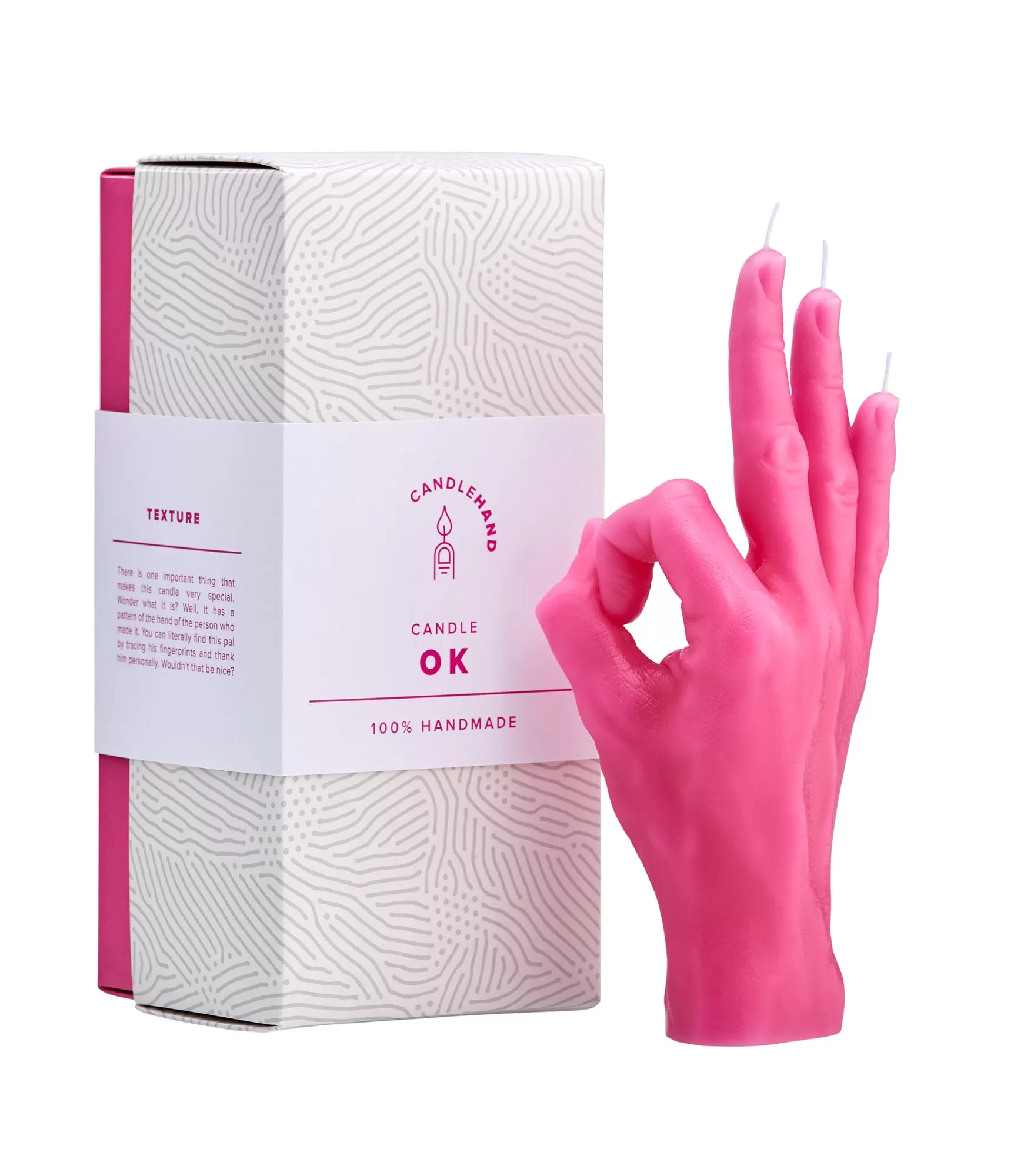 Ar rokām darināta svece OK Pink – iespējams, oriģinālākā dāvana mammai.