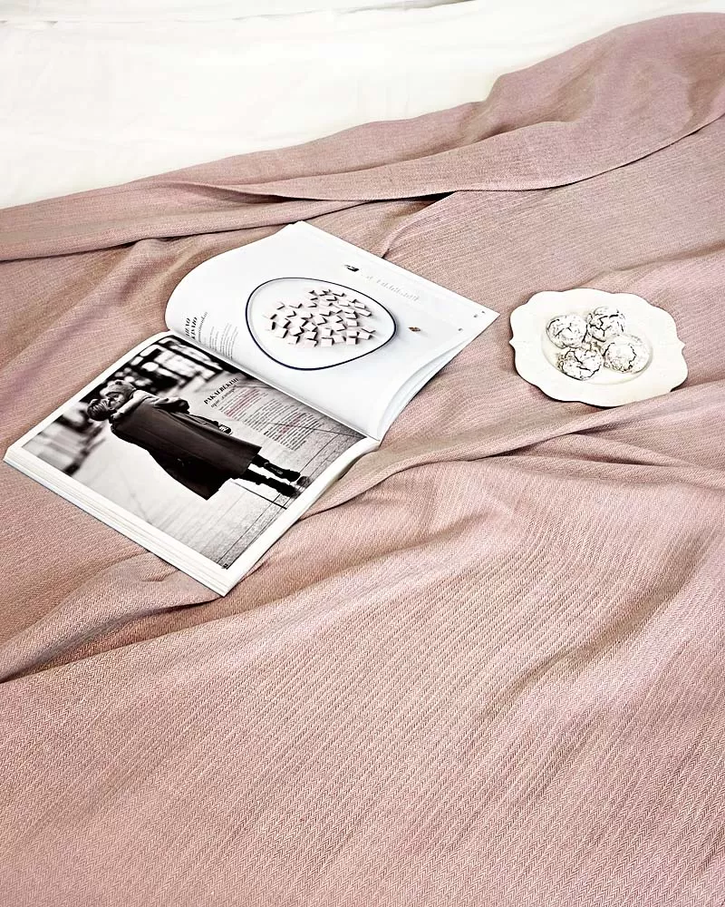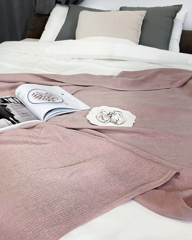 Pasteļkrāsas dabīgs, mīkstināts lina pleds izdaiļos jūsu māju un sniegs īpašu mājīgumu.