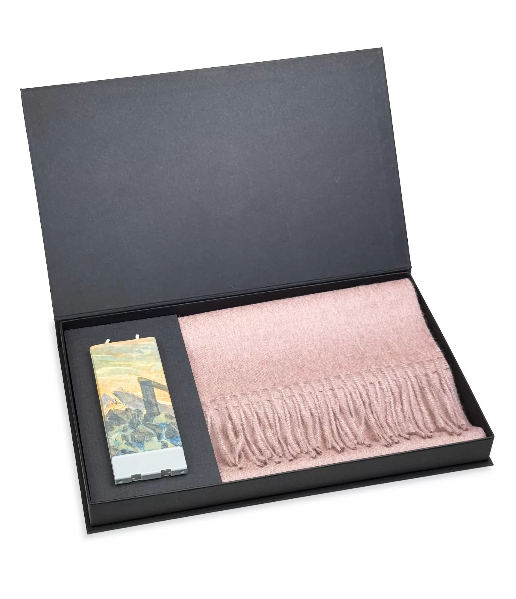 Dāvanu komplekts sievietēm – vilnas šalika un Zodiaka svece.