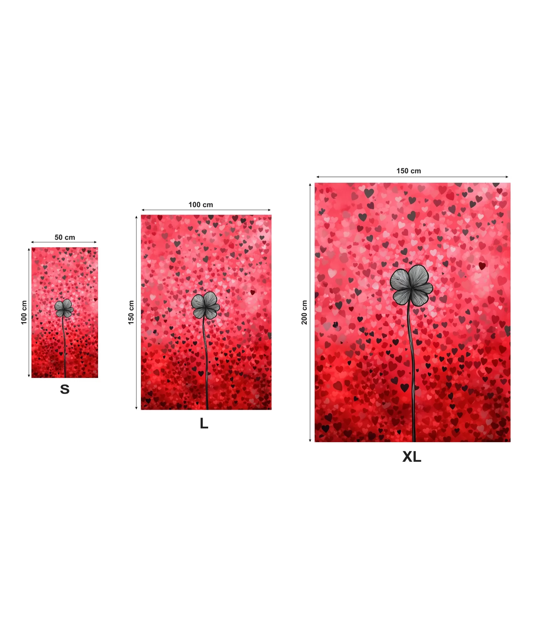 Vannas istabas rokturi vairs nav tikai praktisks mājsaimniecības priekšmets – tie kļūst par personisku stila izskatu pat vannas istabā. Spilgta, sarkani rozā piedurkne ar sirsniņu fonu un lielu četrlapu āboliņu – kā mīlestības un veiksmes talismans. Grafiškai išpieššis āboliņš atgādina tetovējuma līnijas, un fons – kā šsirds lietus – kas rada siltu atmosfēru. Tas ir ne tikai funkcionāls audums, bet arī mākslas darbs, kas var kļūt par galveno akcentu šmodernā vannas istabā.