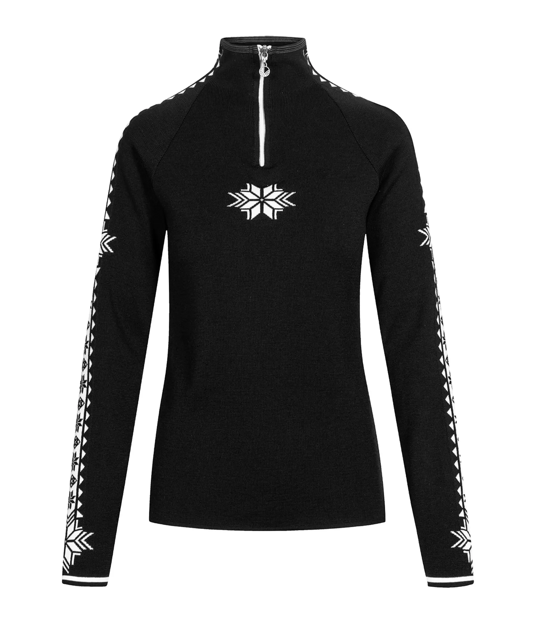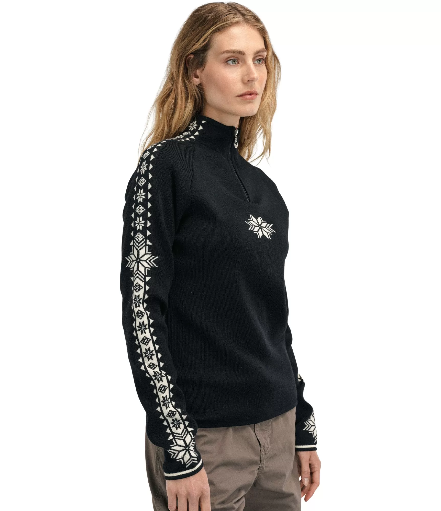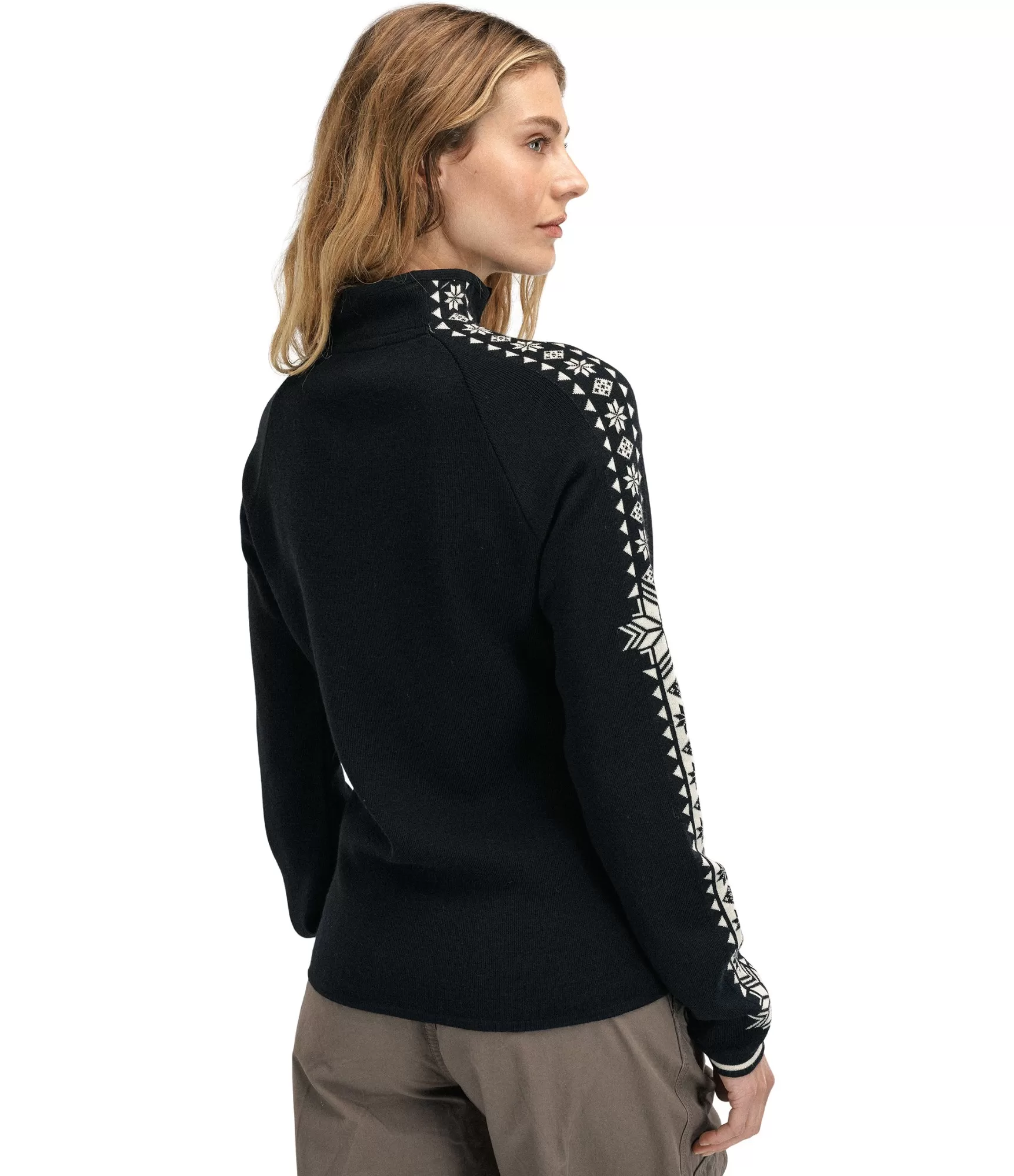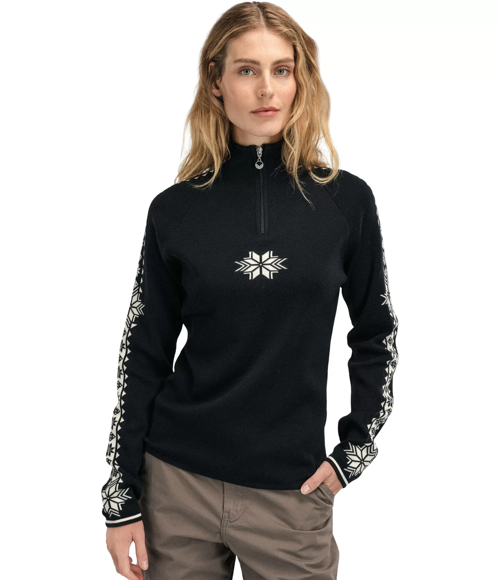 Klasisks vilnas džemperis sievietēm Dale of Norway Geilo Fem. Grezns melns, ekskluzīvs stils un merino vilnas siltums.