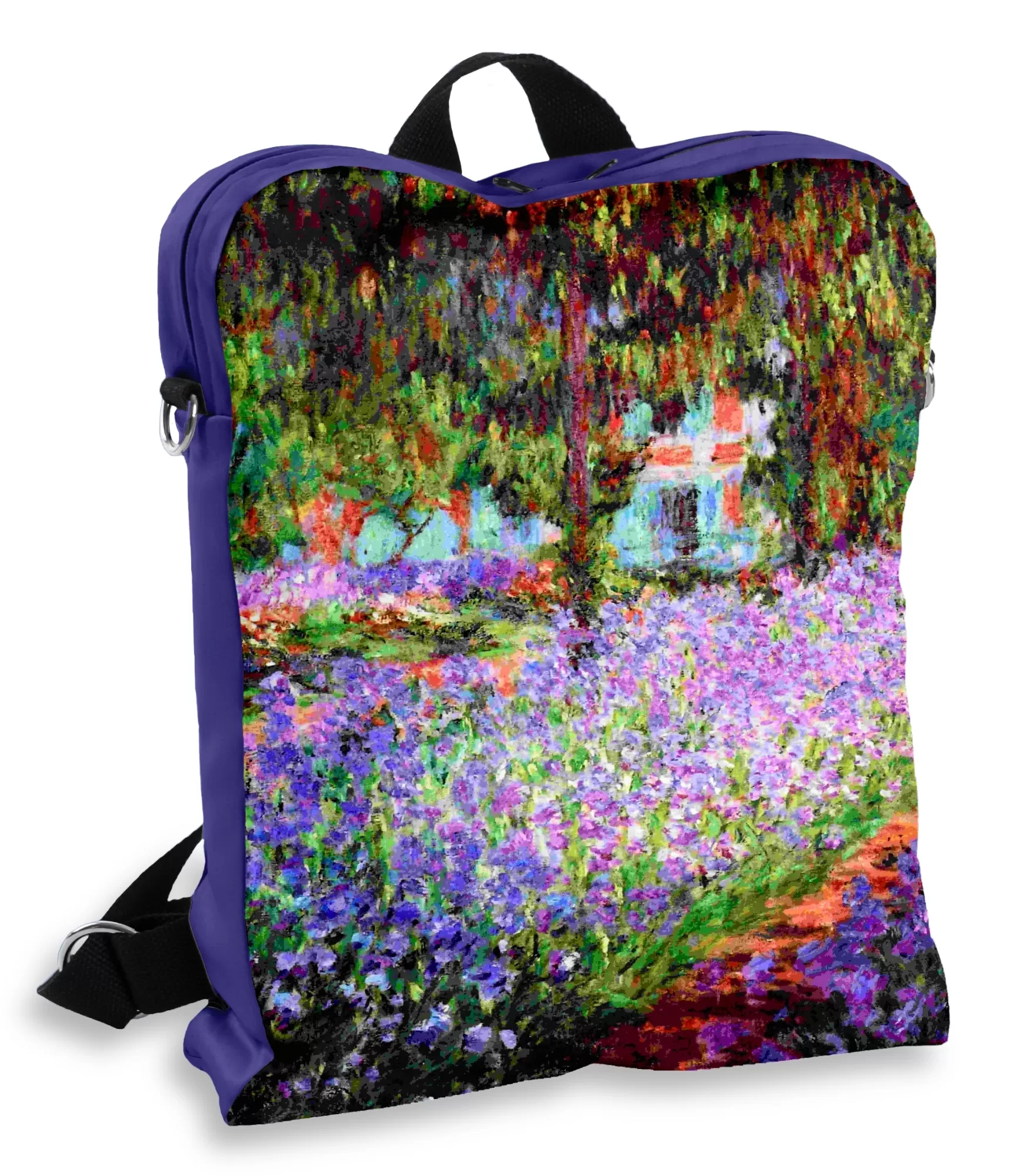 Esmu eleganta mugursoma, ko rotā Kloda Monē glezna "Īrisi Monē dārzā". motīvs, atgādina, ka patiesais skaistums slēpjas mirkļos. Tur, kur zied puķes, saule glāsta zemi, un dārza celiņi ved dziļi – klusēt, smaržot, koncentrēties. Monē dārzs šeit nav tikai vieta – tā kļūst par sajūtu. Un šī sajūta tagad var ceļot ar jums.