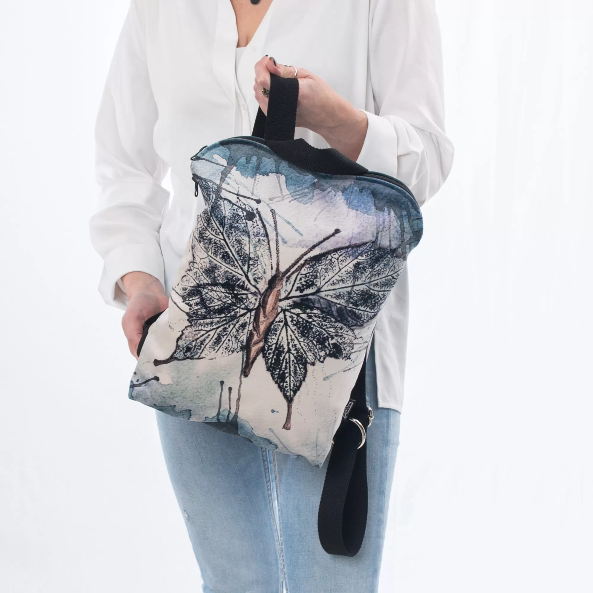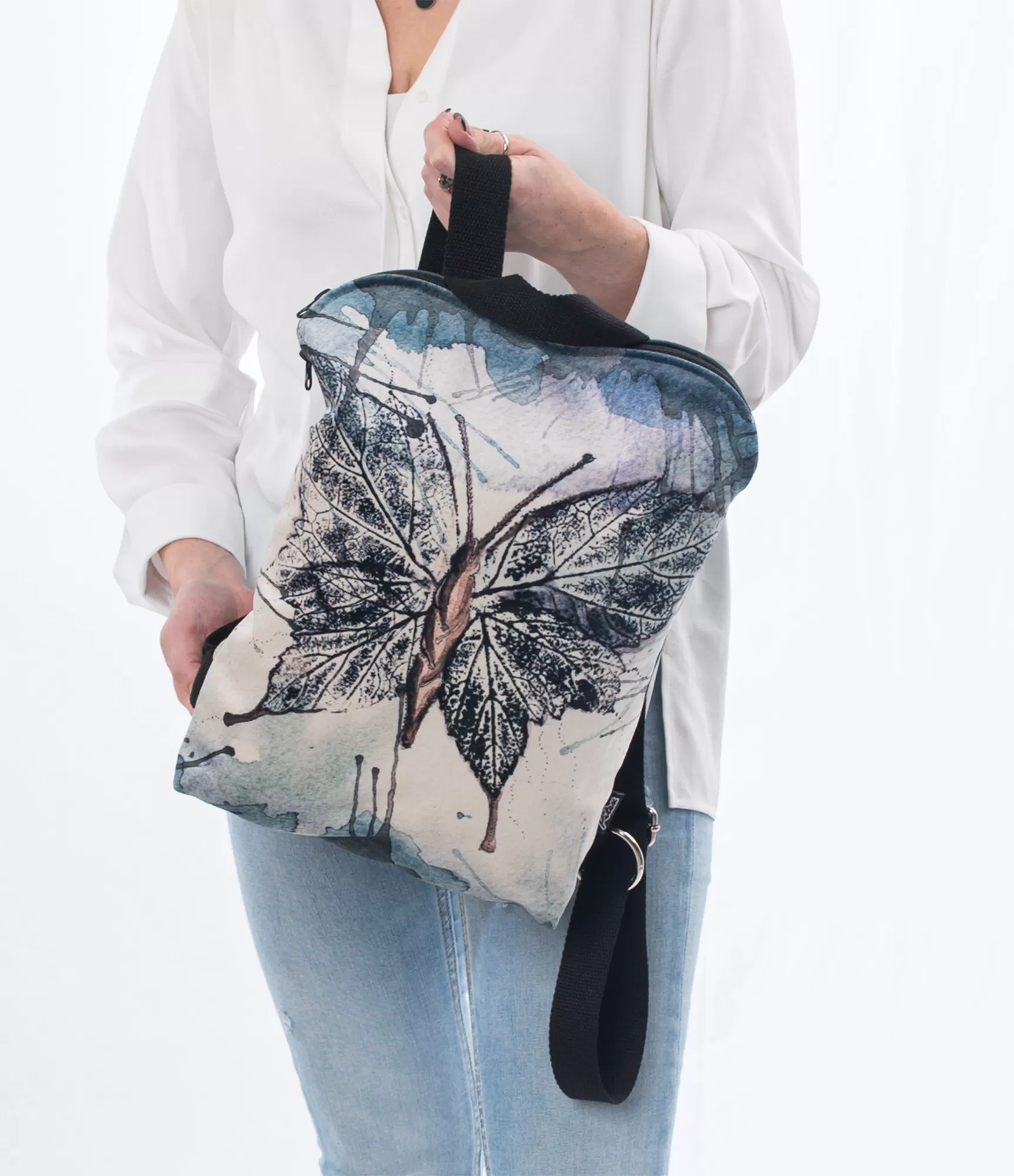 Dizains vai fotogrāfijas prints tiek uzklāts uz vienas mugursomas puses. Otrā puse ir vienkārša un bez printa.