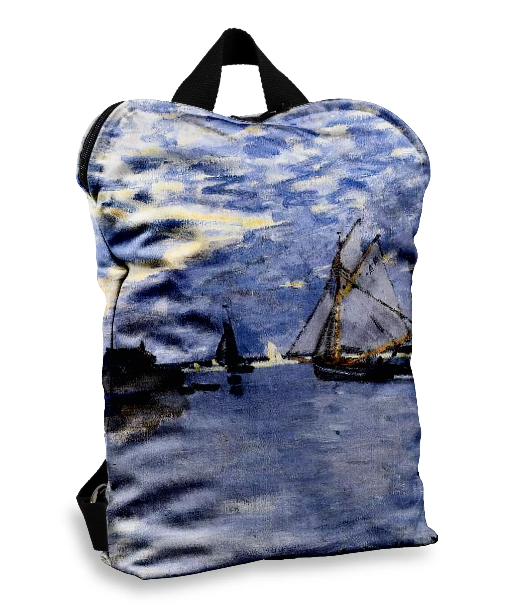 Iespaidīgais impresionisma meistars Klods Monē vienmēr prata padarīt šgaismu – krāsa un krāsa – sajūta Tieši šīs spējas ir paustas šajā īpašajā sieviešu mugursomā. Velnišķīgi vibrējošo akvareļu toņu dizains aicina dzenāties pēc rīta rasas, uz vieglu vējiņu starp ūdensrozēm vai klusu atelpu kopā ar jums. Šī ir mugursoma ne tikai lietām, bet arī emocijām, kuras nēsājam līdzi ikdienā. Šeit atspoguļojas jūras stils, kuģu skaistums un jūras varenība. Šir aksesuārs ir paredzēts sievietei, kura nebaidās būt smalka. Viņa rūpējas par to, ko viņa valkā, ne tikai stila, bet arī iekšējās nozīmes dēļ. Kloda Monē darbs, kas atveidots uz mugursomas auduma, kļūst par švelna atgādinājumu, ka skaistums slēpjas mirkļos – it kā apturētos sitienos, kas it kā izšķīst gaisā. Tāda mugursoma – lieliska izvēle tiem, kas novērtē nevis virspusēju modi, bet gan dziļu estētiskās pasaules elpu.