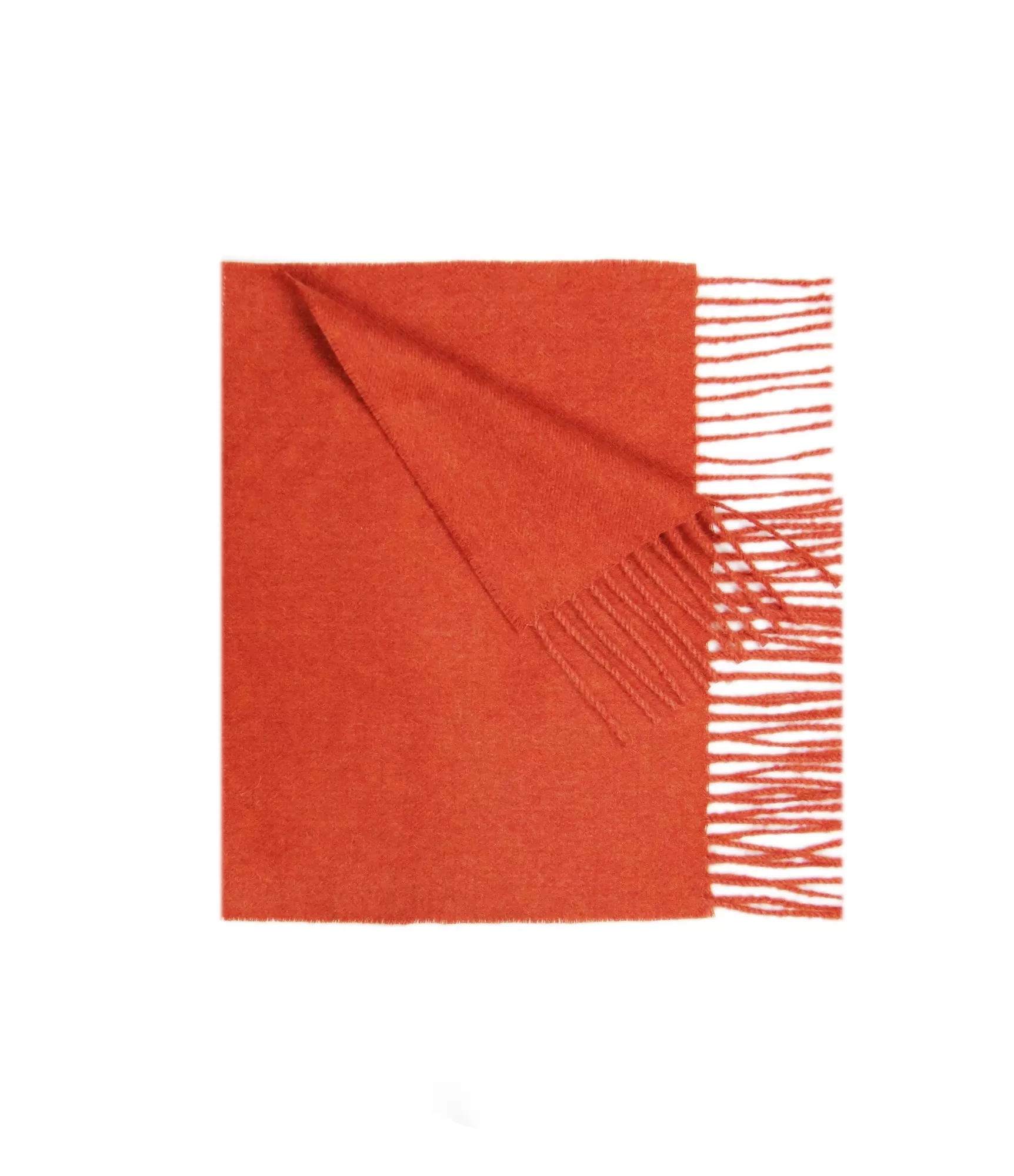 Oranžas krāsas šalle piešķir tērpam siltumu, mājīgumu un mūsdienīgu eleganci, tāpēc šis tonis kļūst par izteiktu akcentu dažādos tērpu salikumos. Tā ir krāsa, kas atdzīvina neitrālus toņus un ienes dzīvīgumu tumšākiem mēteļiem vai džemperiem. Oranžā īpaši skaisti sader ar brūnu, smilšu, pelēku, tumši zilu un melnu krāsu paleti, bet kombinācijā ar gaišiem apģērbiem rada siltu, tīru un harmonisku kontrastu. Šis tonis lieliski piemērots sievietei, kura meklē izteiksmīgu, bet smalku akcentu, kas var piešķirt raksturu pat vienkāršākajam tērpam.