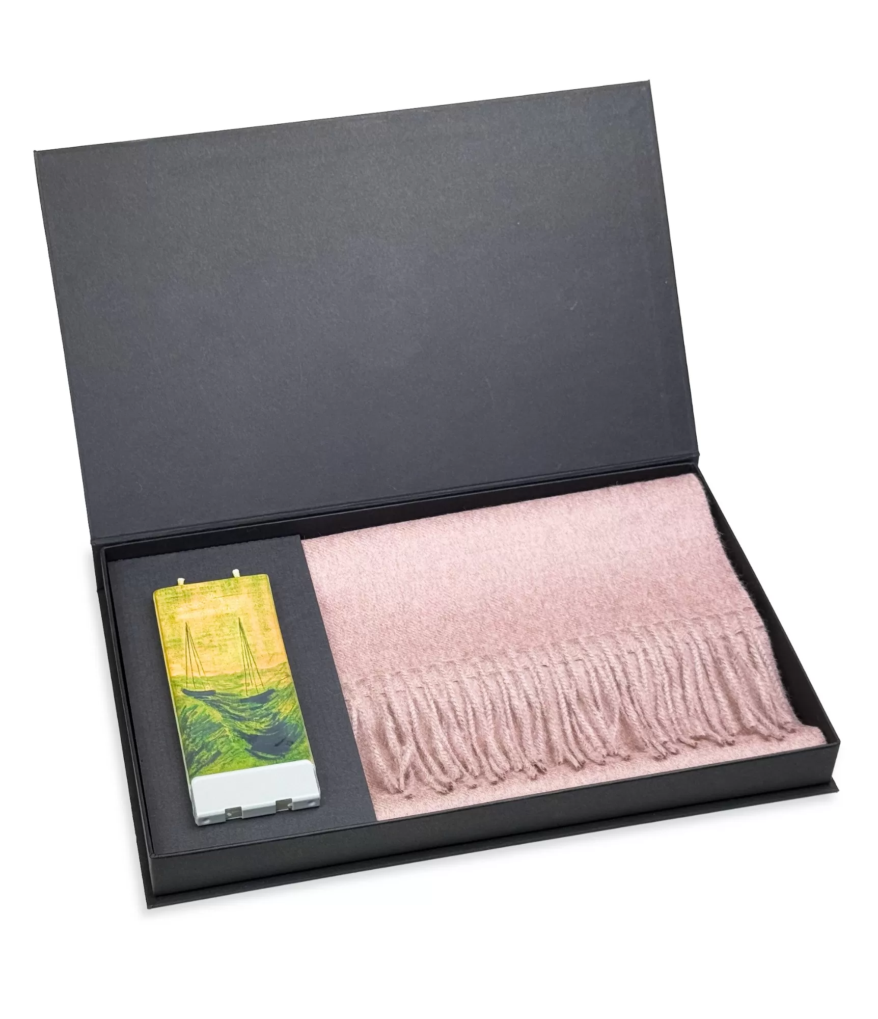 Dāvanu komplekts sievietēm – vilnas šalika un Zodiaka svece.