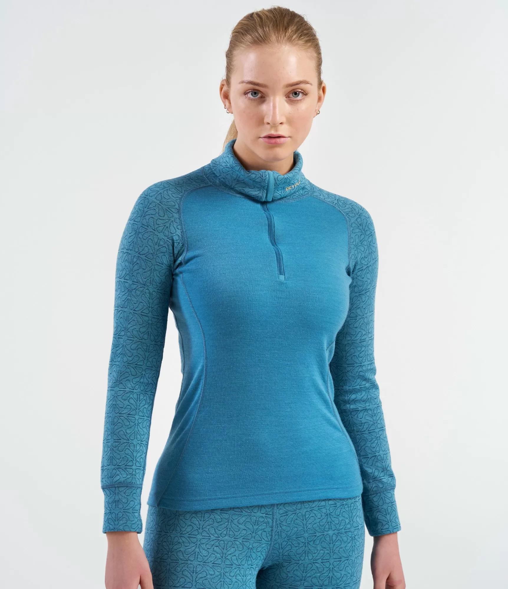 Devold Duo Active Merino 205 Zip Neck Woman ir divslāņu termokrekls sievietēm, kas lieliski apvieno funkcionalitāti, komfortu un stilu. Gaiši zilā "Moon" krāsa piešķir svaigumu, bet smalkais dizains - izcilu eleganci. Šis termotops ar rāvējslēdzēju un augsto apkakli ir ne tikai praktisks, bet arī stilīgs, tāpēc tas būs piemērots gan aktīvām aktivitātēm, gan ikdienas valkāšanai.