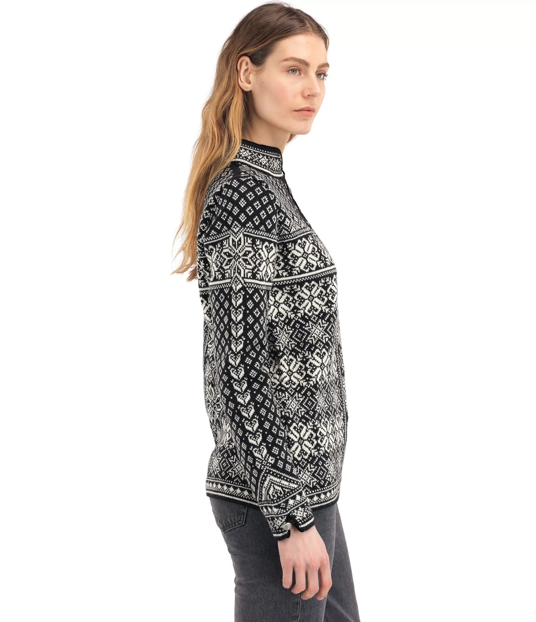 Šis Dale of Norway Peace sieviešu adītais džemperis ir viens no atpazīstamākajiem Norvēģijas modes simboliem pasaulē. Izgatavots no 100% dabīgas vilnas ar šķiedras biezumu 27 mikroni, šis džemperis izceļas ar izcilu izturību, siltumu un ilgmūžību. Klasiskais Slip Fit modelis pieguļ ķermenim, smalki uzsverot sievišķīgo siluetu un piešķirot eleganci jebkurā situācijā.