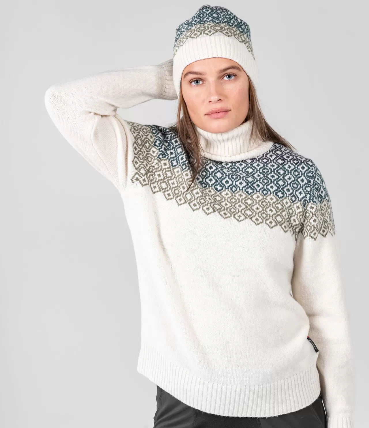 Kad ārā ir auksts, bet gribas īstu mājīgumu, drošību un stilu, sieviešu merino vilnas džemperis kļūst ne tikai par garderobes daļu, bet arī par sajūtu. Šis gaišais Devold modelis ar tīru siluetu un smalku ģeometrisku rakstu ir kas vairāk nekā vienkāršs apģērbs. Tas ir klusais pārliecības un kvalitātes simbols, radīts sievietei, kura izvēlas dabiskumu, siltumu un brīvību. Džempera gaišā krāsa atgādina ziemas mieru, bet augstā, blīvā apkakle maigi aptver kaklu kā vilnas mākonis.