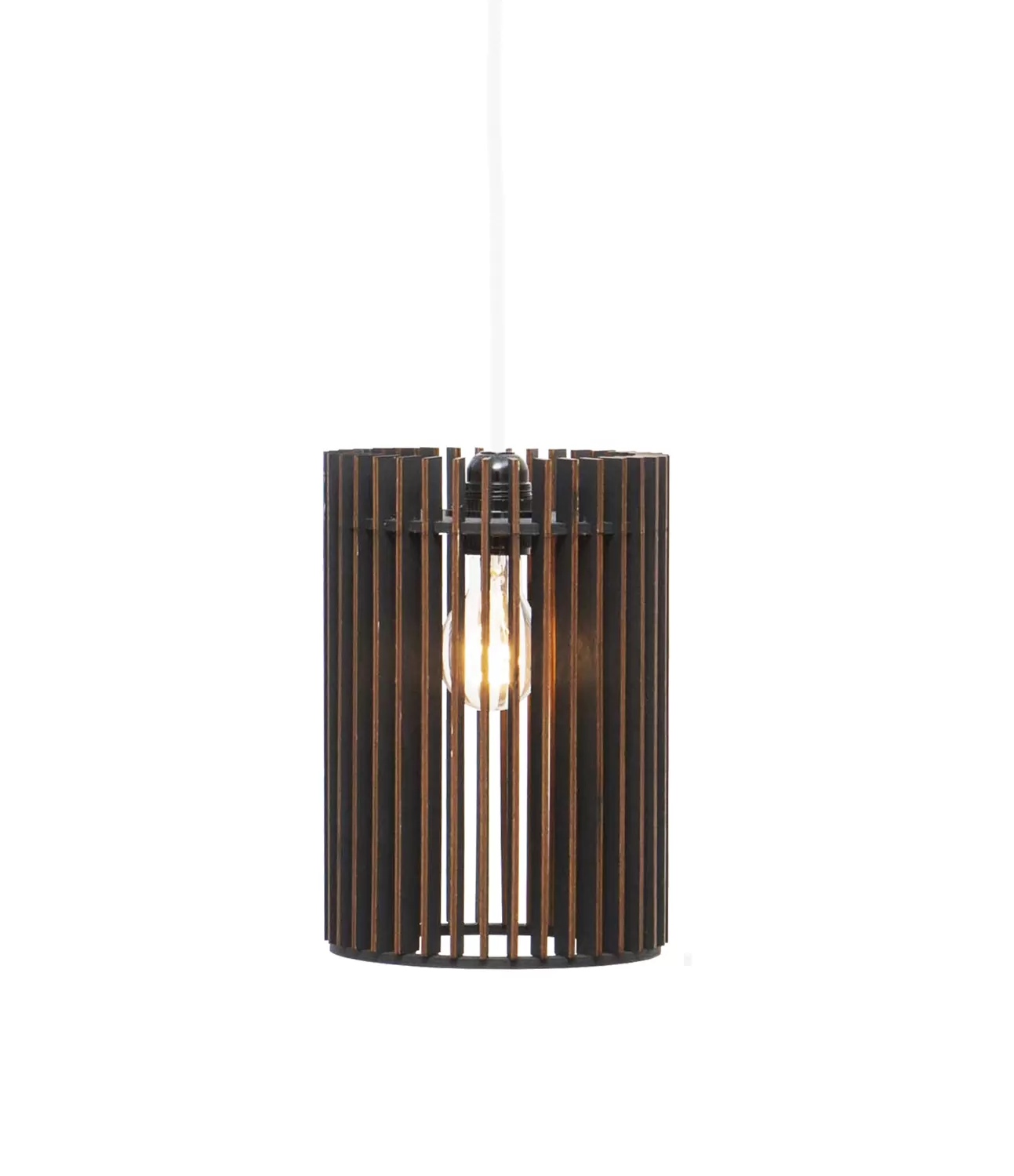 Cilindriskas formas skandināvušstila koka roku darbs šviest ir izgatavotsš rūpīgi atlasīti dabīgā bērza saplākšņa gabali. Ar lāzeru grieztos gabalus slīpē, krāso, līmē ar rokām.