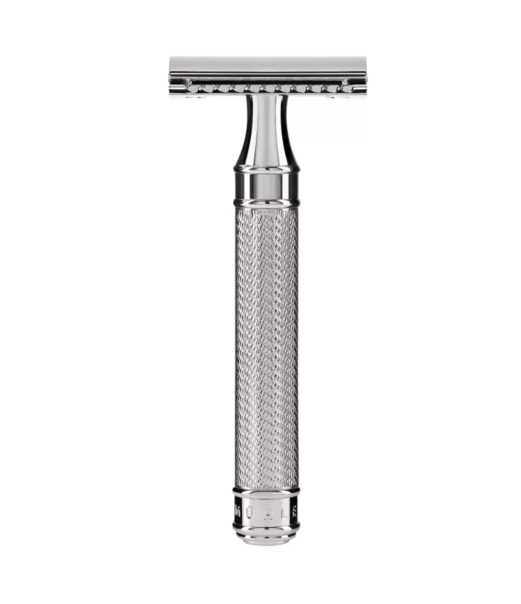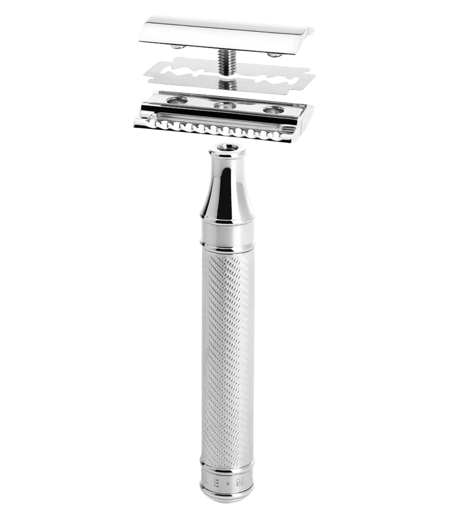 Tradicionāla stila abpusēji griezīgs skuveklis, slēgta tipa.