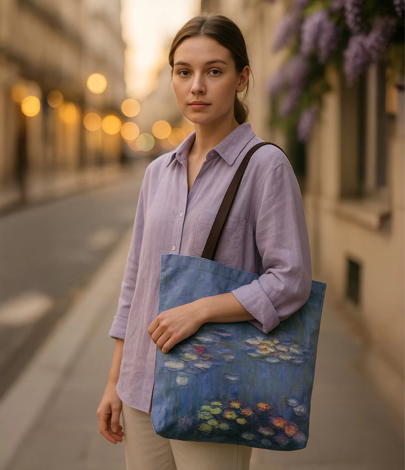 Raksturojums: izturīgas kokvilnas rokturi (65–70 cm), rāvējslēdzējs, iekšējā kabatiņa
