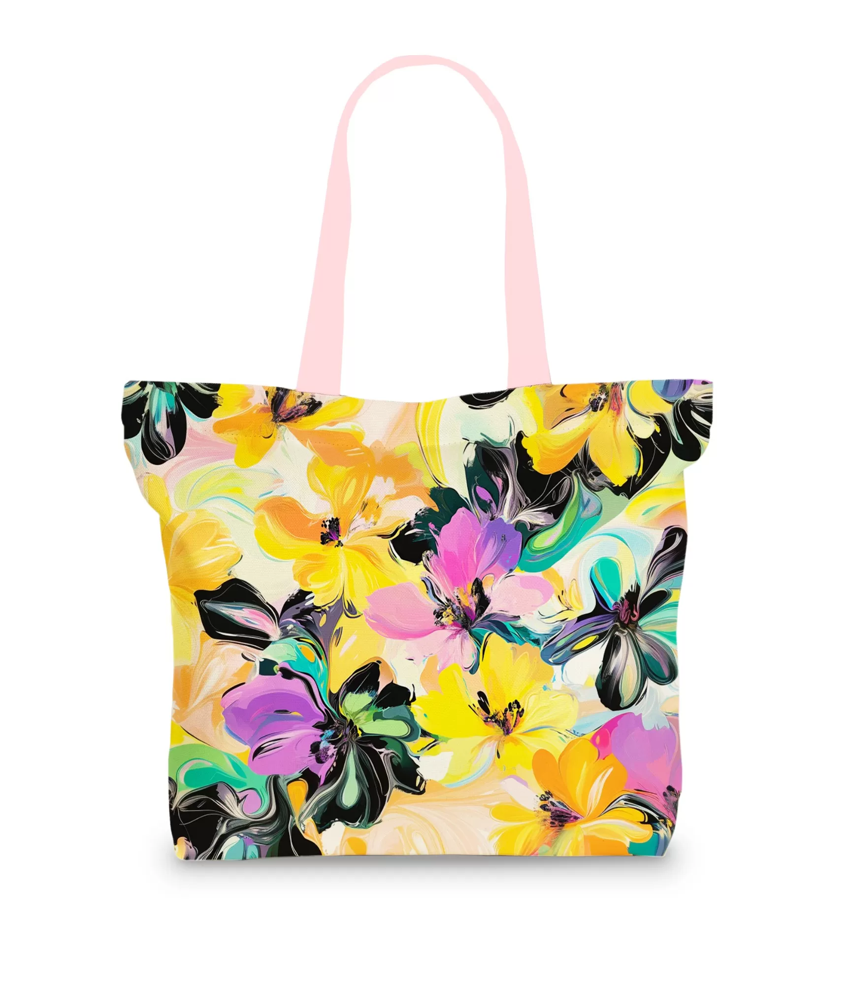 Šī krāsainā soma ir īsts mākslas un dzīvīguma izpausmes piemērs! Audums kalpo kā audekls iespaidīgam ziedu rakstam, kurā dominē spilgti dzeltenie, rozā, violetie un citi koši ziedi. Ziedi ir attēloti impresionisma stilā, kas piešķir somai dinamiskumu un māksliniecisku šarmu. Stilīga soma sievietēm, kas lieliski piemērota ikdienas lietošanai.