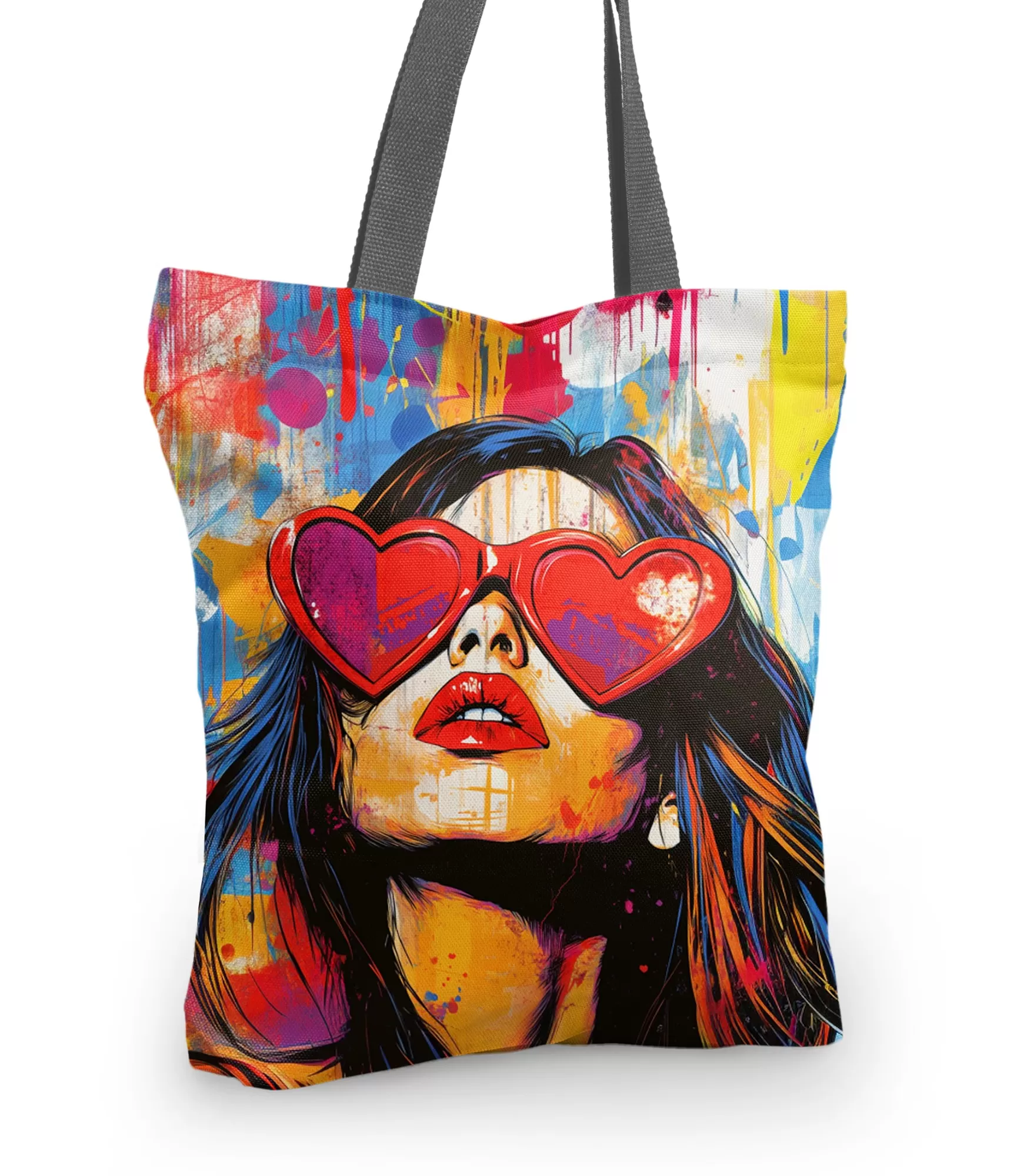 Ir piederumi, kas ne tikai papildina stilu, bet arī runā mūsu labā. šes sievieteška rokassomiņa – kā mākslas darbs, kas pulsē ar košām krāsām, sajūtām un pašapziņu. Kompozīcijas centrā – sievietes portrets ar spilgti sarkanām, ovālas formas brillēm, kas atspoguļo krāsu brīvību un drosmi. Ši aina atgādina ielu mākslas iedvesmotu Šuak – te nav vietas pelēcībai, te katrs triepiens aicina skatīties plašāk, mīlēt drosmīgāk un dzīvot gaišāk.
