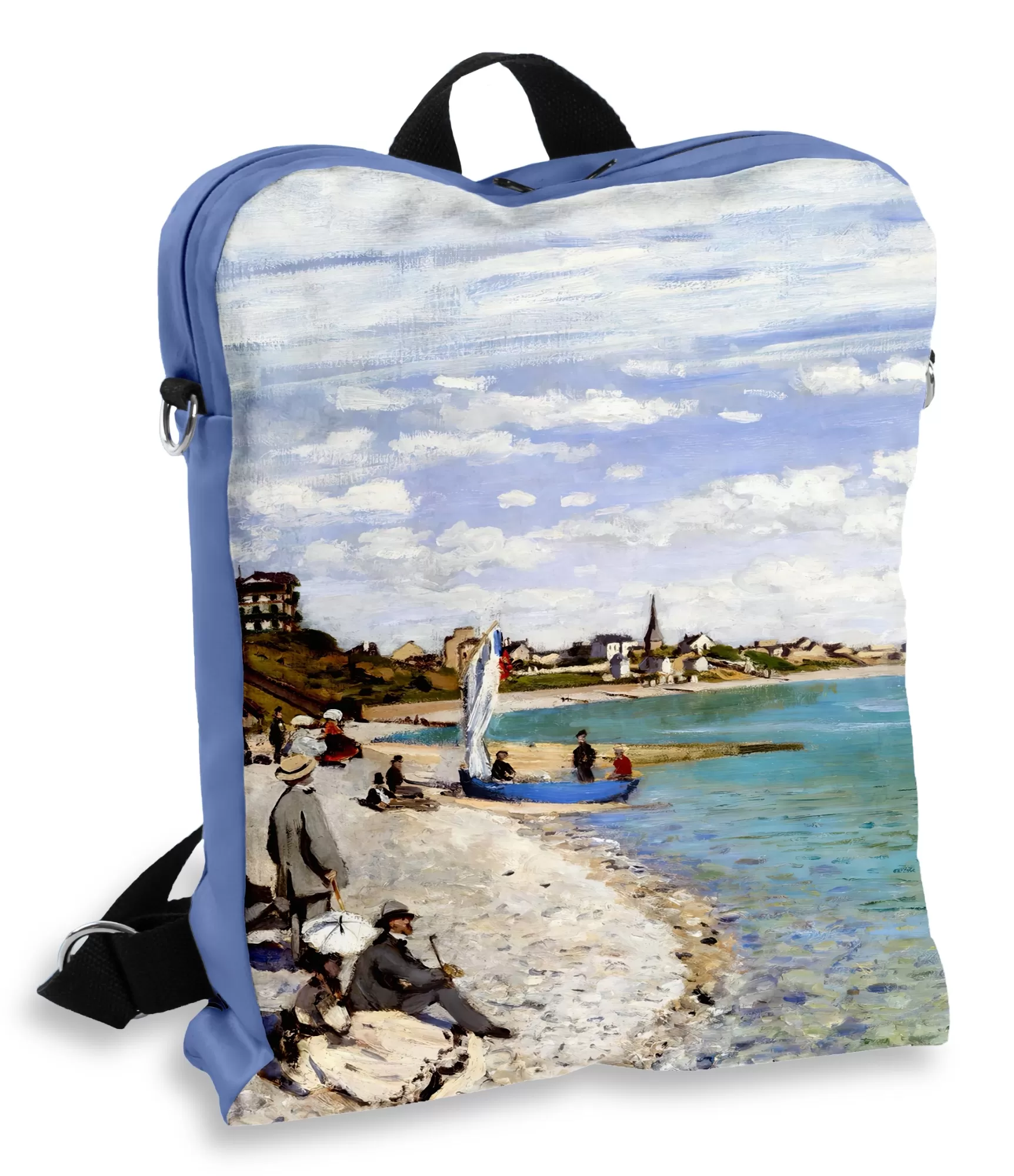 Kloda Monē glezna "Regate Sainte-Adrese"“ – tā ir ne tikai jahtu regate, bet arī saulains dzīves mirklis. Pamatojoties uz darbu, mugursomas dizains aicina uz velna aci pie apvāršņa, uz prieku, kas rodas vērošanas un elpošanas vasarā. Šī ir mugursoma, kas atspoguļo viegluma, krāsu un kustību pilnu dienu.