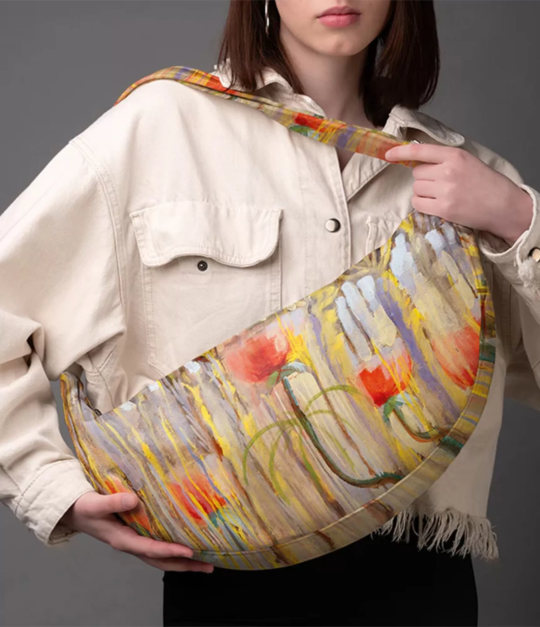Rokassomu ar regulējamiem rokturiem varat ērti nēsāt rokā, uz pleca vai ap kaklu. Pateicoties universālajam rokturim, jūs varat viegli pielāgot somas pārnēsāšanu atbilstoši savām vajadzībām. Tā ir lieliska izvēle ikdienai, nodrošinot gan komfortu, gan stilu. Peonijas rokassomiņa piešķir jūsu izskatam eleganci un švelnu. Ziedu raksti piešķir rokassomiņai unikalitāti un atšķirību. Tā ir lieliska izvēle gan ikdienai, gan īpašiem gadījumiem, kad vēlaties uzsvērt savu individualitāti.