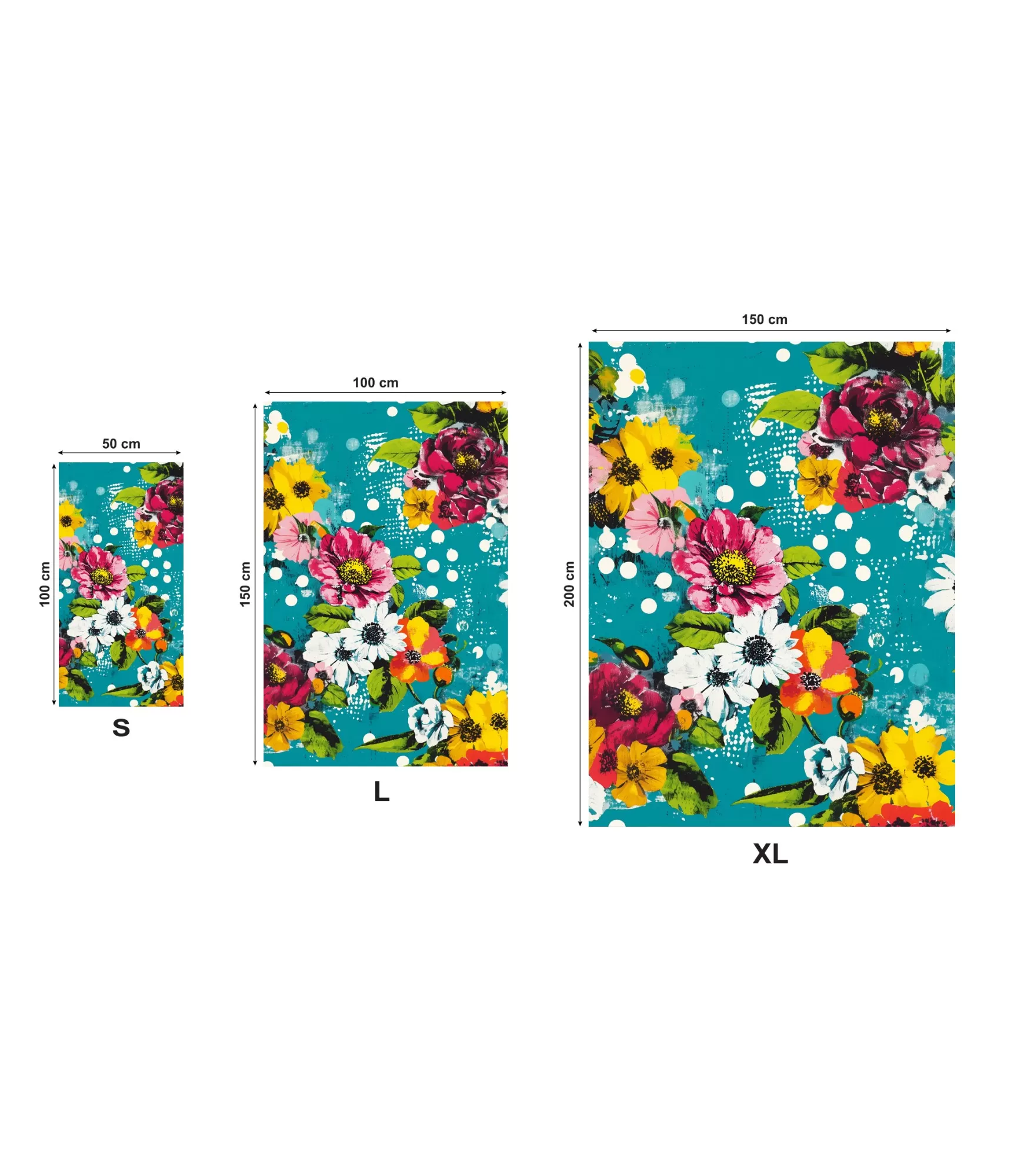 Margas ar tik bagātīgiem, izteiksmīgiem ziedu rakstiem kļūst ne tikai par ikdienas priekšmetu, bet arī par mākslas darbu vannas istabā. ŠŠajā dizaina variantā dominē tirkīzzils fons, uz kura zied milzīgi, izteiksmīgi krāsoti ziedi – balti saulespuķu, dziļi rozā peoniju, ugunīgi sarkanu magoņu un saules dzeltenu ziedu motīvi. Šķiet, ka katru sitienu pārņem iš ekspresionisma gleznas: nepilnīga, bet dzīva, emocionāla, sniedzot skatītājam estētisku prieku. Tumšāki un negaidīti iestrādāti balti plankumi atgādina lietus vai izlijušu akrilu – tas rada dzīvīguma, organiskuma un autentiskuma sajūtu. Roka izskatās tā, it kā tā būtu krāsota ar roku, kas piešķir personību katram rītam vai vakaram.