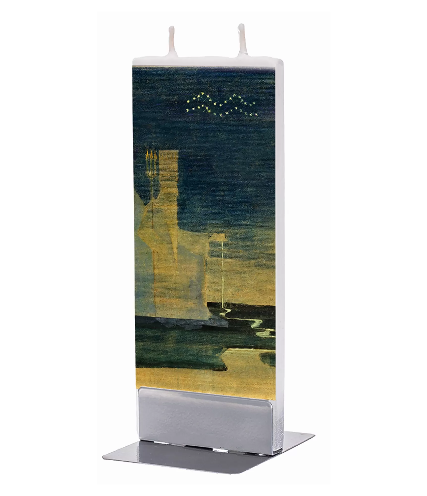 Šī unikālā svece "Zodiaks Ūdensvīrs 11" iemieso bezgalīgu iztēli un inovatīvu domāšanu, smalki pārvēršot M. K. Čiurlionis redzējumu taustāmā formā. Roku darbs, dekorēts ar motīviem no "Zodiaks" sērijas, piedāvā minimālistisku plakanu siluetu, kas piešķir izsmalcinātu modernitāti jebkuram interjeram. Ražots Lietuvā no augstas kvalitātes parafīna, šis stilīgais mājas aksesuārs ir aprīkots ar divām kokvilnas vīlēm un elegantu tērauda statīvu, nodrošinot stabilu un mierīgu degšanu līdz pat 4 stundām.