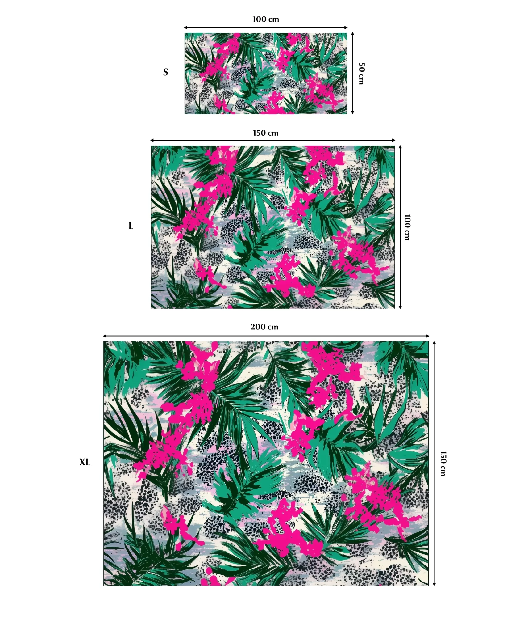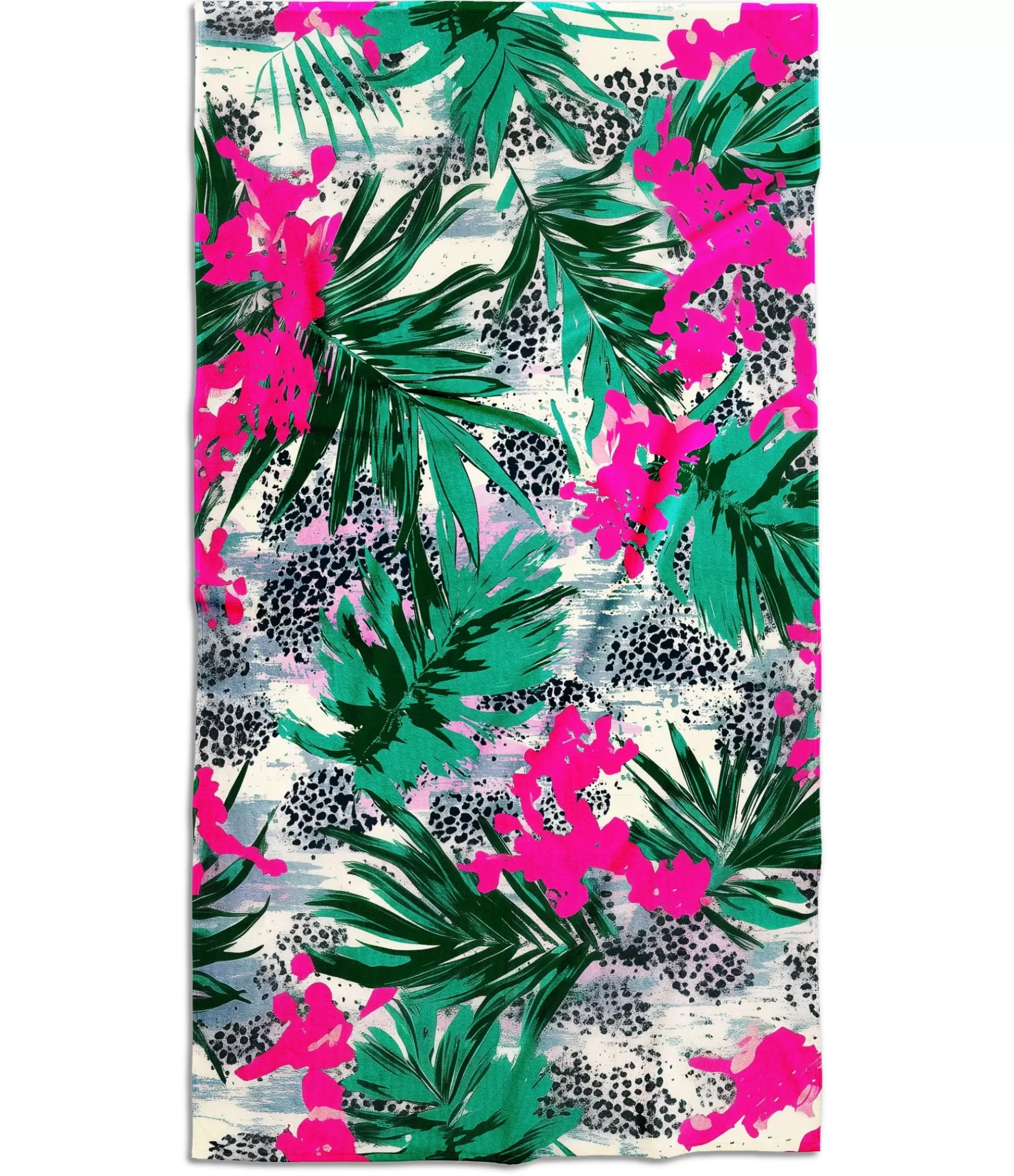 Šis ryškus tropiskais vannas istabas rokturisšizstaro drosmi, dzīvesprieku un neierobežoto dabas spēku. Bagātīgi zaļās palmu lapas šķiet š smaržo gaisu un fuksijas ziedus – tas akvarelis pārsprāgst – rada nerimstošu tropu ritmu, kas caurstrāvo katru šio auduma centimetru. Fons ir kontrastains: šviegli šepiski triepieni saplūst ar tumšiem plankumiem, atgādinot leoparda kažokādas rakstu – tas nav tikai rokasspiediens, bet gan drosmīga mākslas interpretācija ikdienas dzīvē. Abas puses – kā š attēls: viens – unikāla dizaina druka, citi – balta, mīksta un funkcionāla frotē kokvilna, gatava uzsūkt ūdeni un atsvaidzināt ķermeni. Šir produkts ļauj radīt noskaņu ne tikai pludmalē, bet arī vannā – rīta rutīna iegūst pavisam citu enerģiju, kad to pavada tik eksplozīvs krāsu prieks.