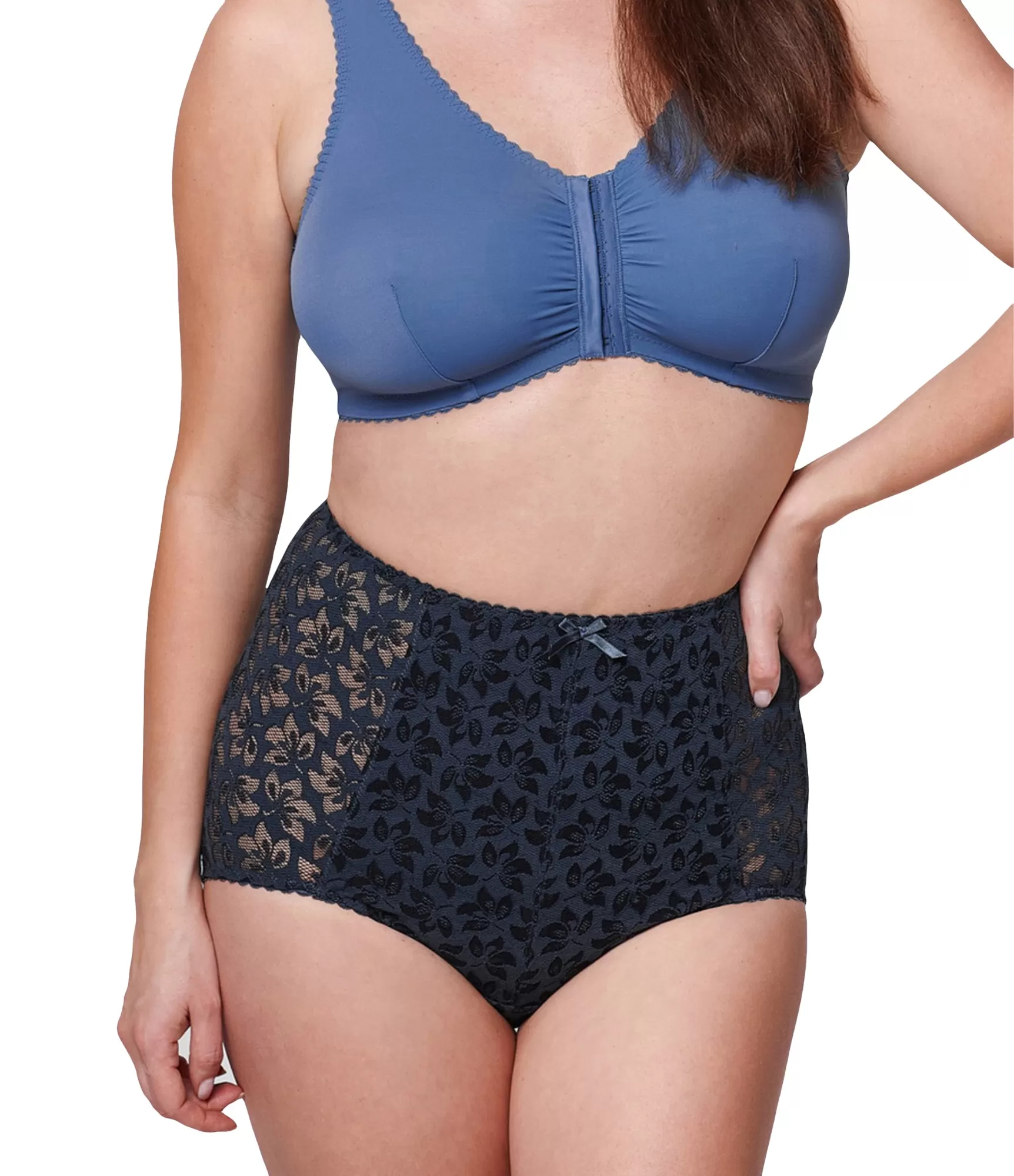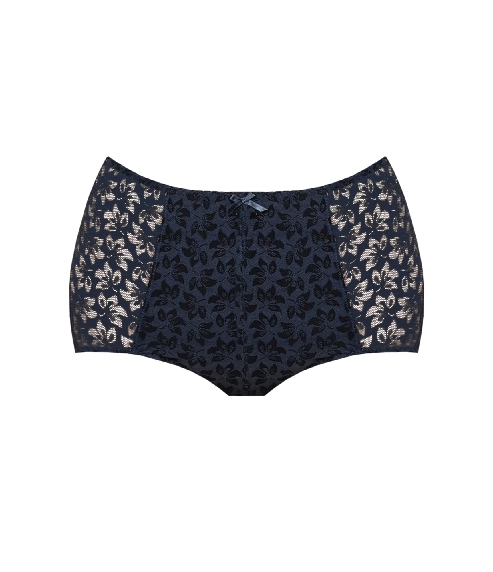 Īpaši ērtas un velnišķīgi veidojošas sieviešu biksītes ar augstu vidukli. elastīgas ziedu mežģīnes. Biksīšu vēdera daļa pastiprināta ar plānu kokvilnas oderi. Biksīšu priekšpusi rotā smalka satīna lentīte.