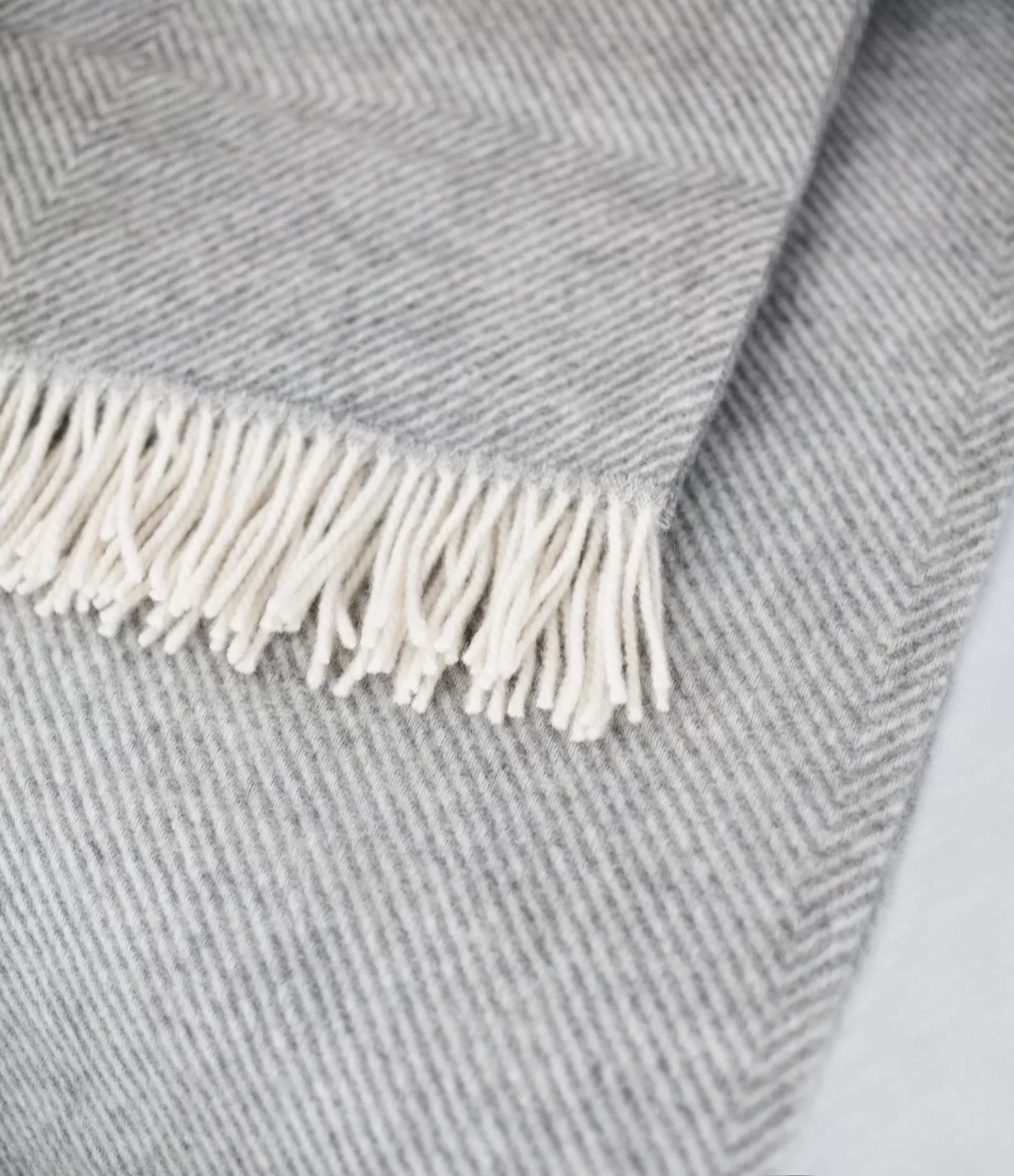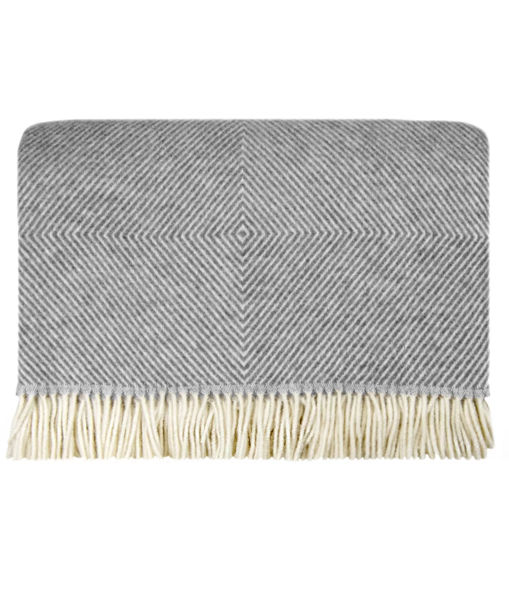 Šis lielais vilnas pleds izceļas ar atkārtojošu rombu rakstu, kas vienmērīgi klāj visu auduma virsmu un veido mierīgu, harmonisku vizuālo ritmu. Raksts nav dominējošs – tas ir smalks un viegls, drīzāk sajūtams nekā uzkrītoši redzams, tāpēc pleds izskatās elegants un mūsdienīgs. Dabīgās baltās un pelēkās krāsas salikums piešķir tīrības, gaismas un vizuāla līdzsvara sajūtu, ļaujot šo izstrādājumu viegli iekļaut gan minimālistiskā, gan mājīgā, slāņotā interjerā.