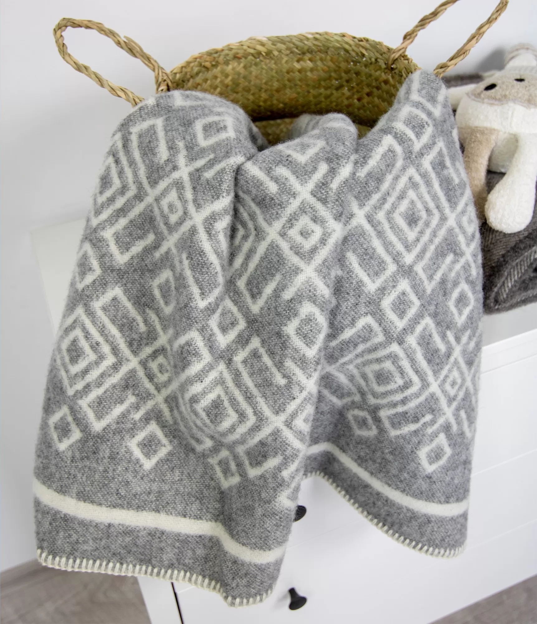 Vilnas pleds bērniem Nordic Shore 130 Grey – tas ir smalka un izteiksmīga dizaina bērnu pleds, iedvesmots no Baltijas jūras piekrastes noskaņas. Ģeometriskie raksti atgādina viļņu ritmu, vēja noslīpētus akmentiņus un smilšu kāpu zīmējumus. Baltās un pelēkās krāsas kombinācija rada tīru, vieglu un mājīgu tēlu, kas lieliski iederas bērna istabā un kļūst par skaistu gultas detaļu.