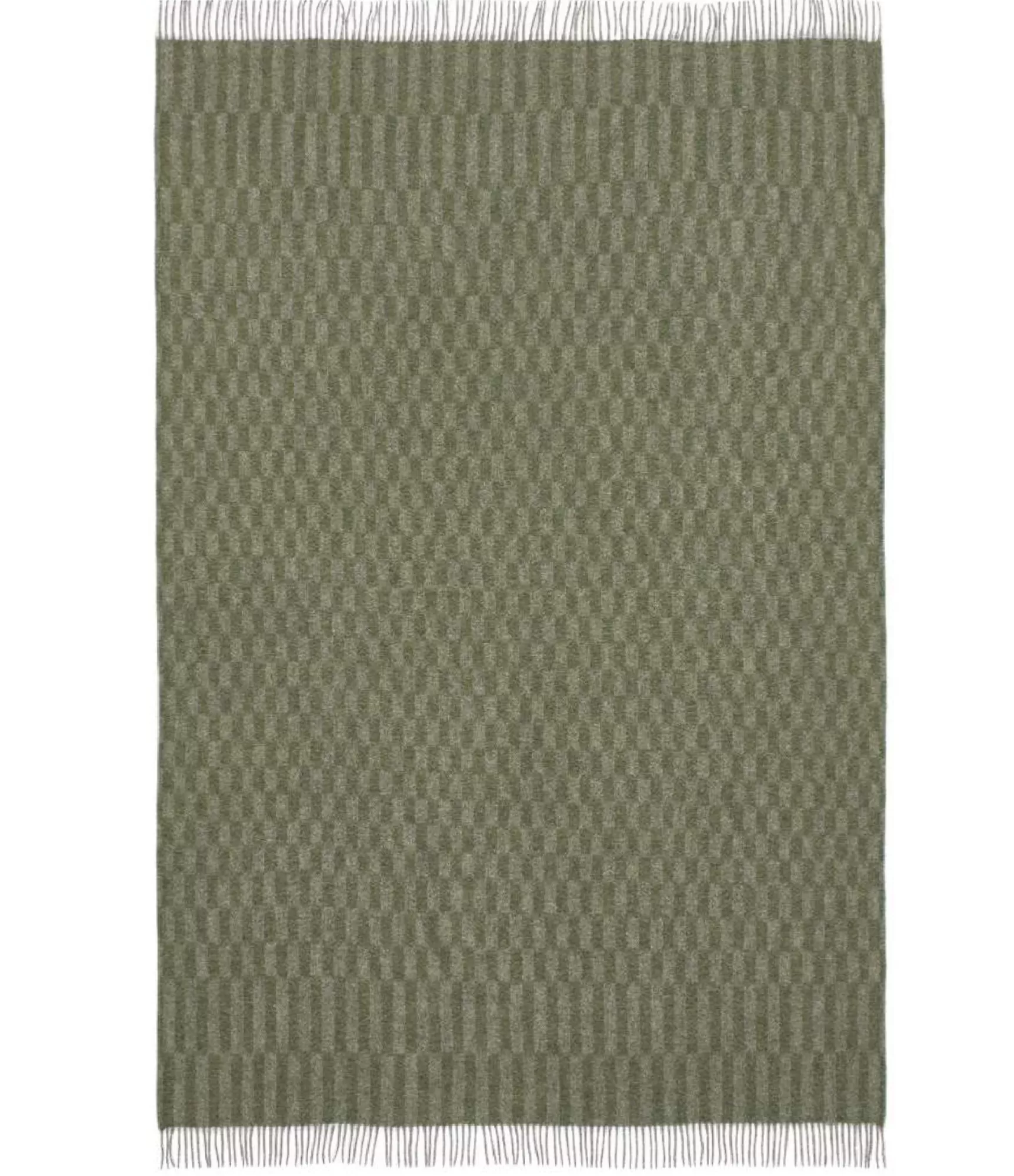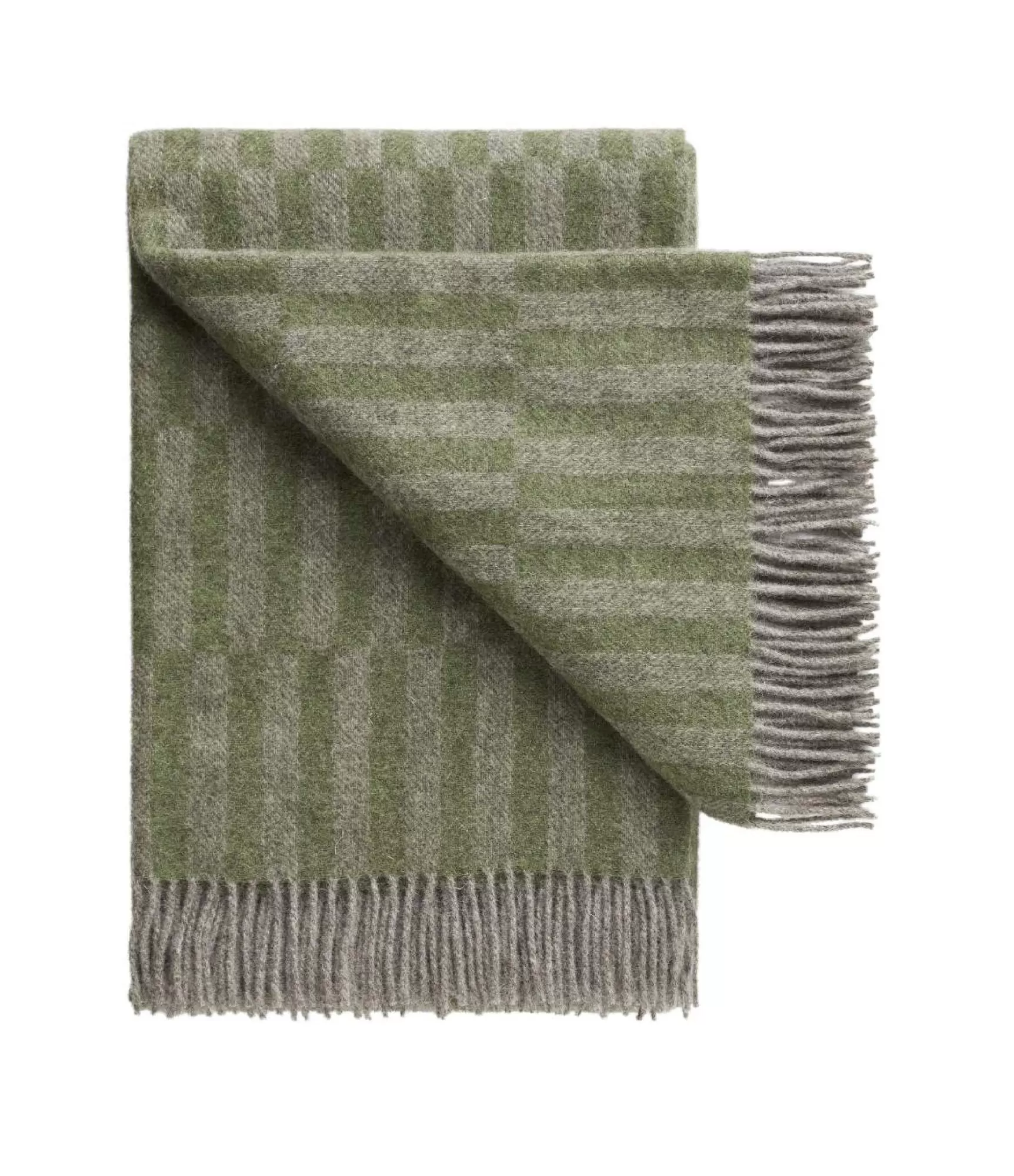 Modelis „Pebble Green“ izceļas ar smalku, neuzkrītošu rakstu, kas piešķir virsmai tekstūru, bet saglabā neitrālu izskatu un ir viegli kombinējams. Garās, rūpīgi apstrādātās bārkstis uzsver dabisko vilnas raksturu un piešķir pledam klasisku skandināvu stila sajūtu.