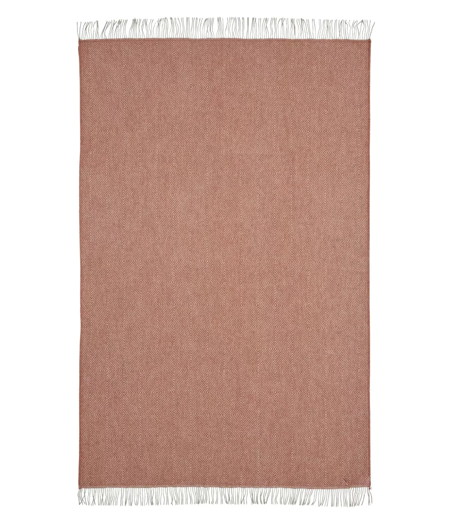 Rombu raksts piešķir pledam struktūru un dekorativitāti, vienlaikus saglabājot mierīgu, sakārtotu ritmu. Ģeometriskie motīvi smalki atklājas tuvumā un skaisti izskatās plašākā telpā – uz gultas, dīvāna vai krēsla. Gaišās bārkstis papildina dizainu ar vieglu akcentu un izceļ dabīgās vilnas raksturu.