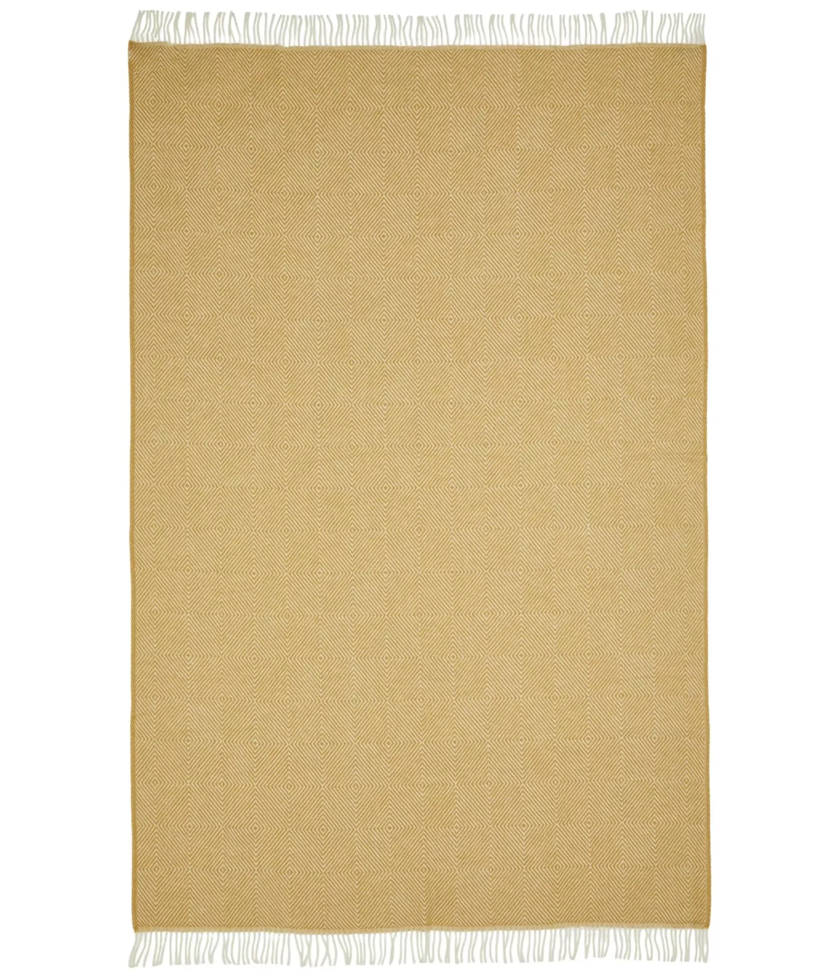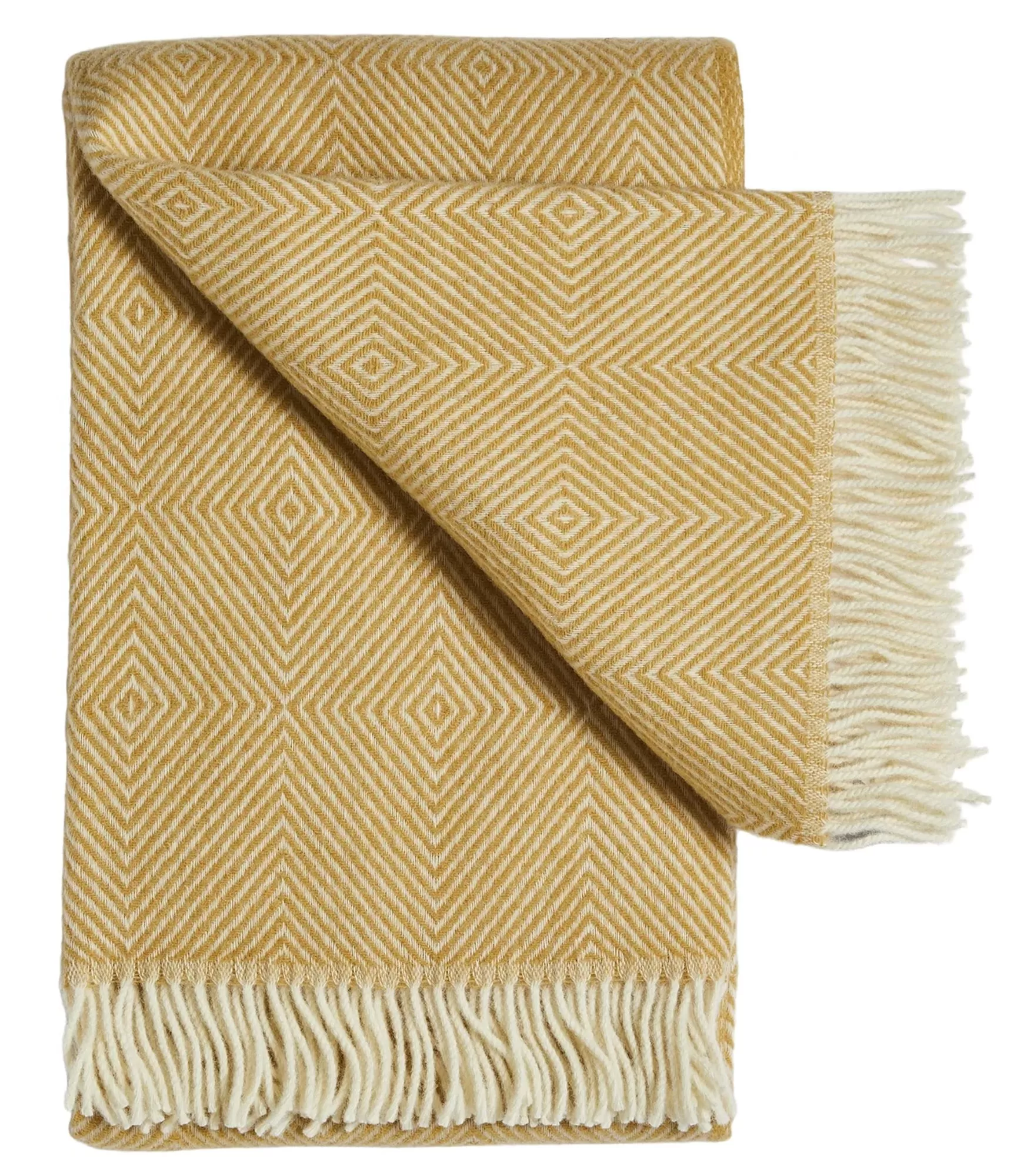 Šis ScandiMAMA pleds uzreiz piesaista uzmanību ar siltu, saulainu dzelteno krāsu, kas smalki saskaņota ar baltiem rombu rakstiem. Ģeometriskais motīvs piešķir dizainam struktūru un mūsdienīgumu, savukārt krāsu gamma rada mājīgu, optimistisku noskaņu. Tas ir pleds, kas interjerā darbojas kā akcents – atdzīvina telpu, bet vienlaikus saglabā estētisku līdzsvaru un ir viegli saskaņojams ar dabīga koka, baltas vai pelēcīgas krāsas detaļām.