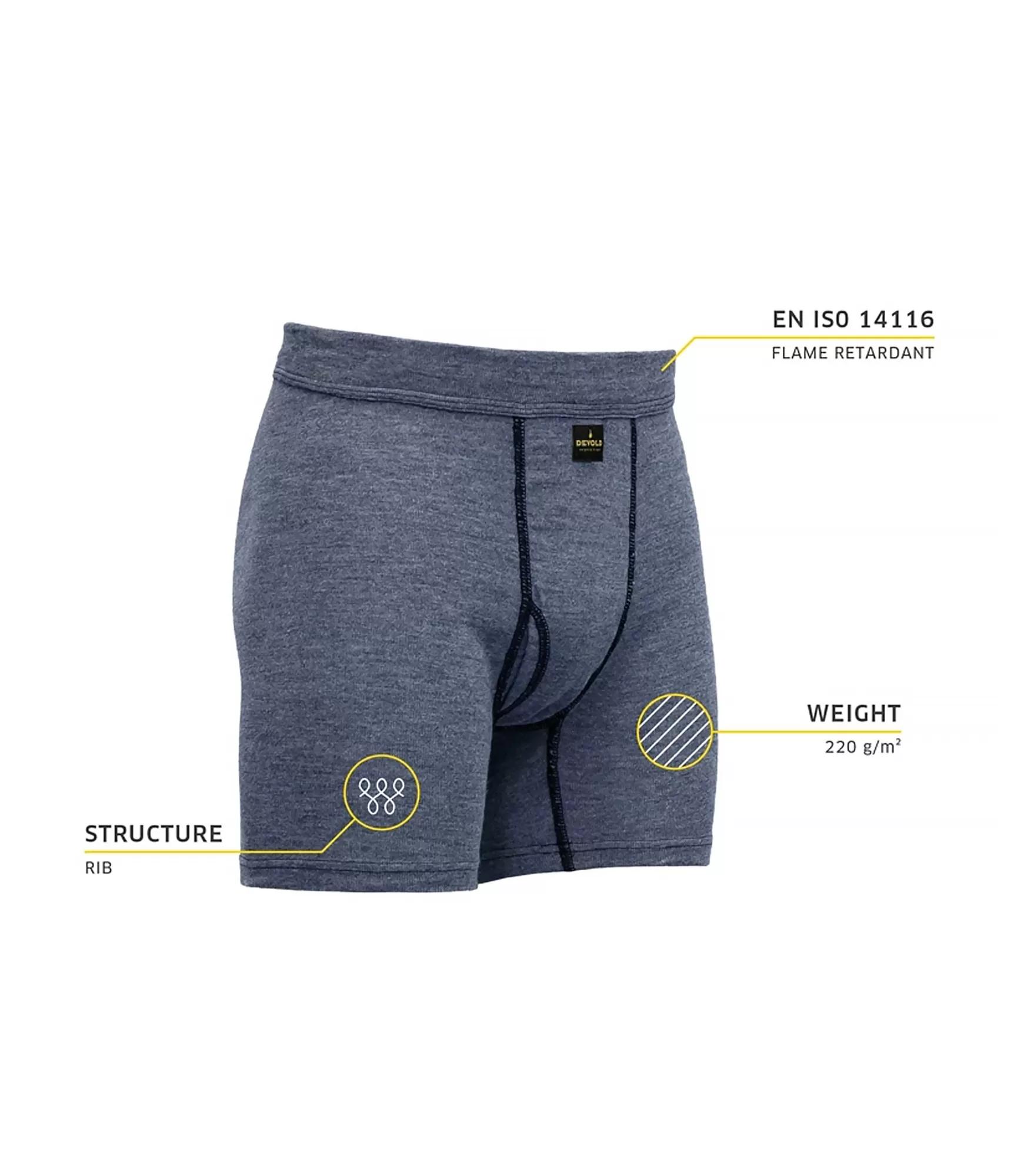 DEVOLD TOTAL kolekcijas apakšveļa ir ārkārtīgi izturīga un lieliski aizsargā pret karstumu un liesmu. Šie apakšveļa ir izgatavota iš trikotāžas audums - 50% merino vilna un 50% liesmu slāpējoša šķiedra. Tā ir ideāla izvēle, kad nepieciešama apakšveļa darbam - ugunsdzēsējiem, spēkstacijām, jūrniekiem vai citiem industriālajiem darbiniekiem ikdienas valkāšanai. Tie ļoti labi pieguļ un žūst uz ķermeņa. Pateicoties īpašajai tehnoloģijai, šie apakšveļa pēc mazgāšanas nesaraujas.