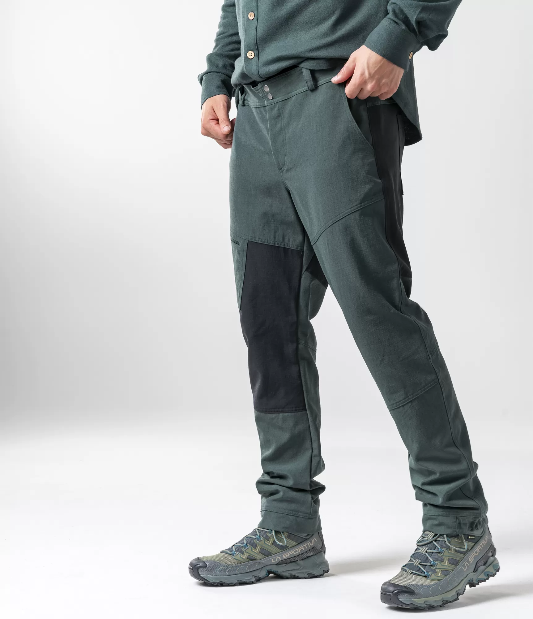 Bikses izgatavotas no 70 % merino vilnas un 30 % poliamīda, tāpēc audums ir ne tikai silts un elpojošs, bet arī ievērojami izturīgāks pret nodilumu. Izmantotais “ripstop” audums pasargā no plīsumiem un berzes – īpaši svarīgi, ejot cauri mežam, dodoties kalnu maršrutos vai pavadot laiku dabā. Tumši zaļā “Woods” krāsa piešķir kārtīgu, dabisku un viegli saskaņojamu izskatu, kas piemērots gan aktīvām nodarbēm ārā, gan ikdienai pilsētā.