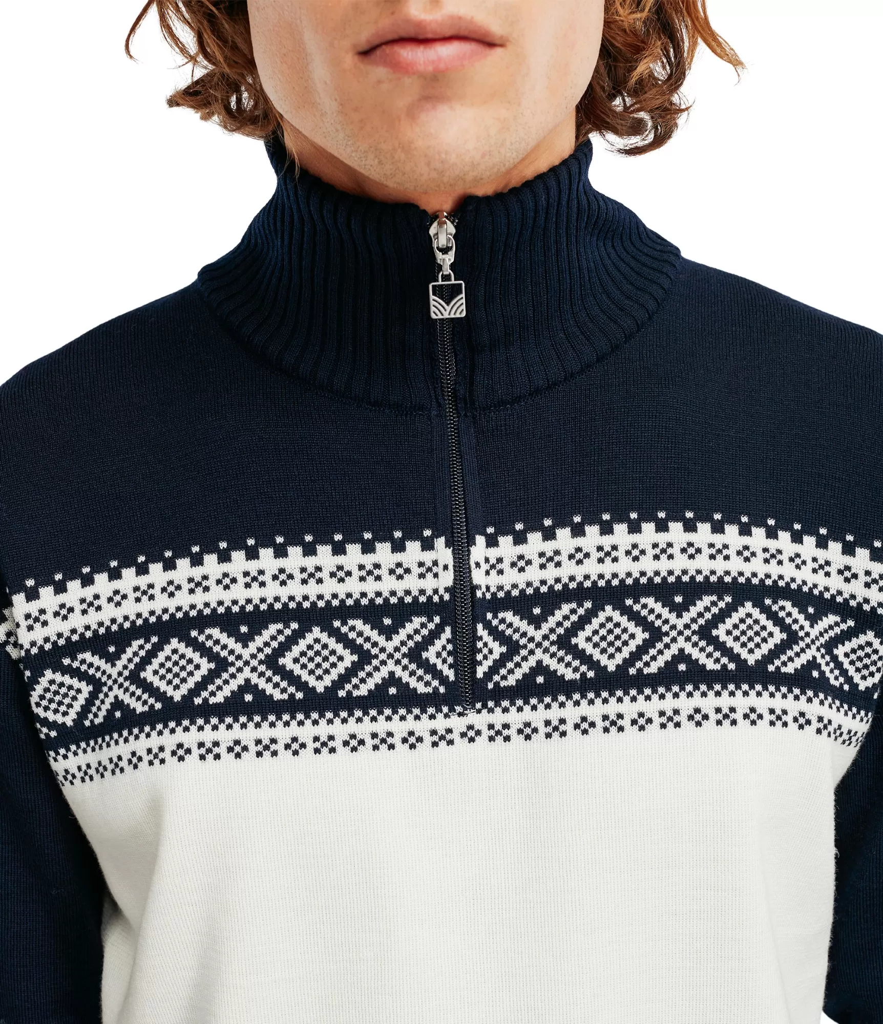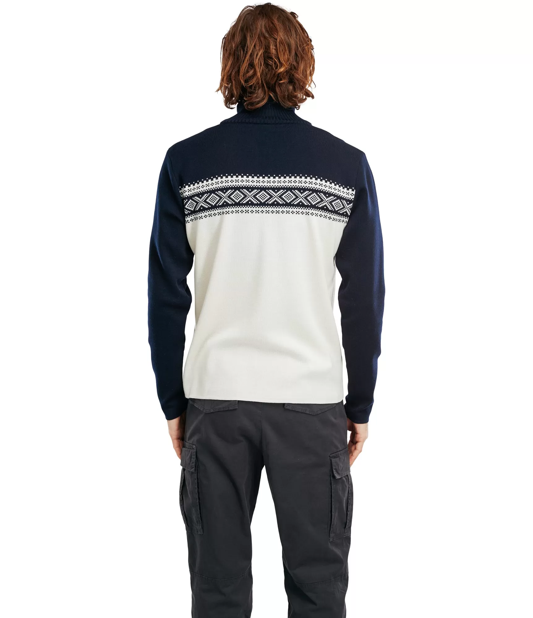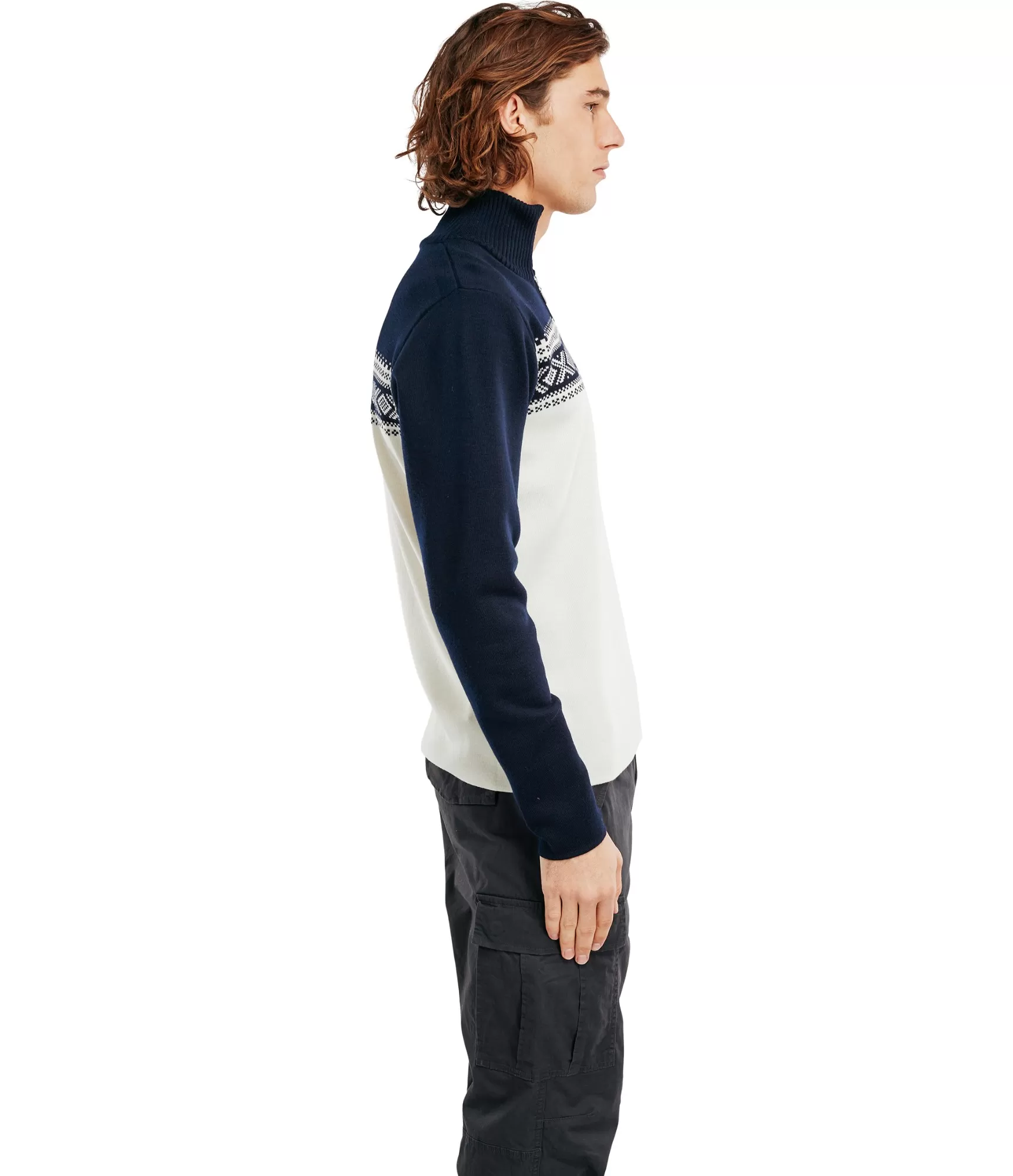 Dale of Norway Dalestølen džemperis – tas ir vieglāks un sportiskāks nekā slavenais „Cortina 1956“ modeļa interpretācija, kas radīta modernam vīrietim, kurš novērtē stilu, komfortu un funkcionalitāti. Ražots š Izgatavots no 100% merino vilnas (20,5 mikroni), kas ir īpaši maiga ādai, šis modelis nodrošina izcilu komfortu pat ilgstošas valkāšanas laikā. Viegls, bet lieliski siltumu noturošais audums piemērots gan vēsiem vakariem pilsētā, gan aktīvām dienām kalnos. Atjaunināts norvēģu „Cortina“ aplis, augstā apkakle ar ceturtdaļas garu rāvējslēdzēju un harmoniskā Offwhite/Navy krāsu kombinācija piešķir džemperim mūsdienīgumu un eleganci.