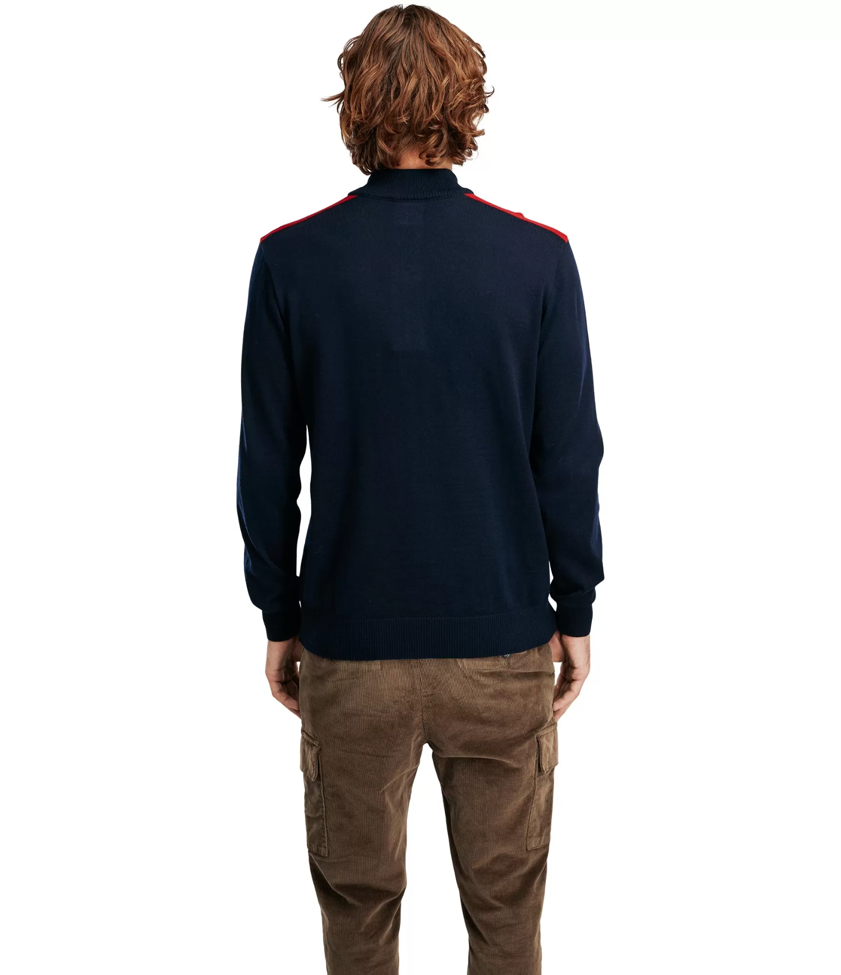 Pusaugsta apkakle. Džempera modelis - Slim Fit - pieguļošs. Fotoattēlā modeļa augums – 189 cm, nēsā L izmēru