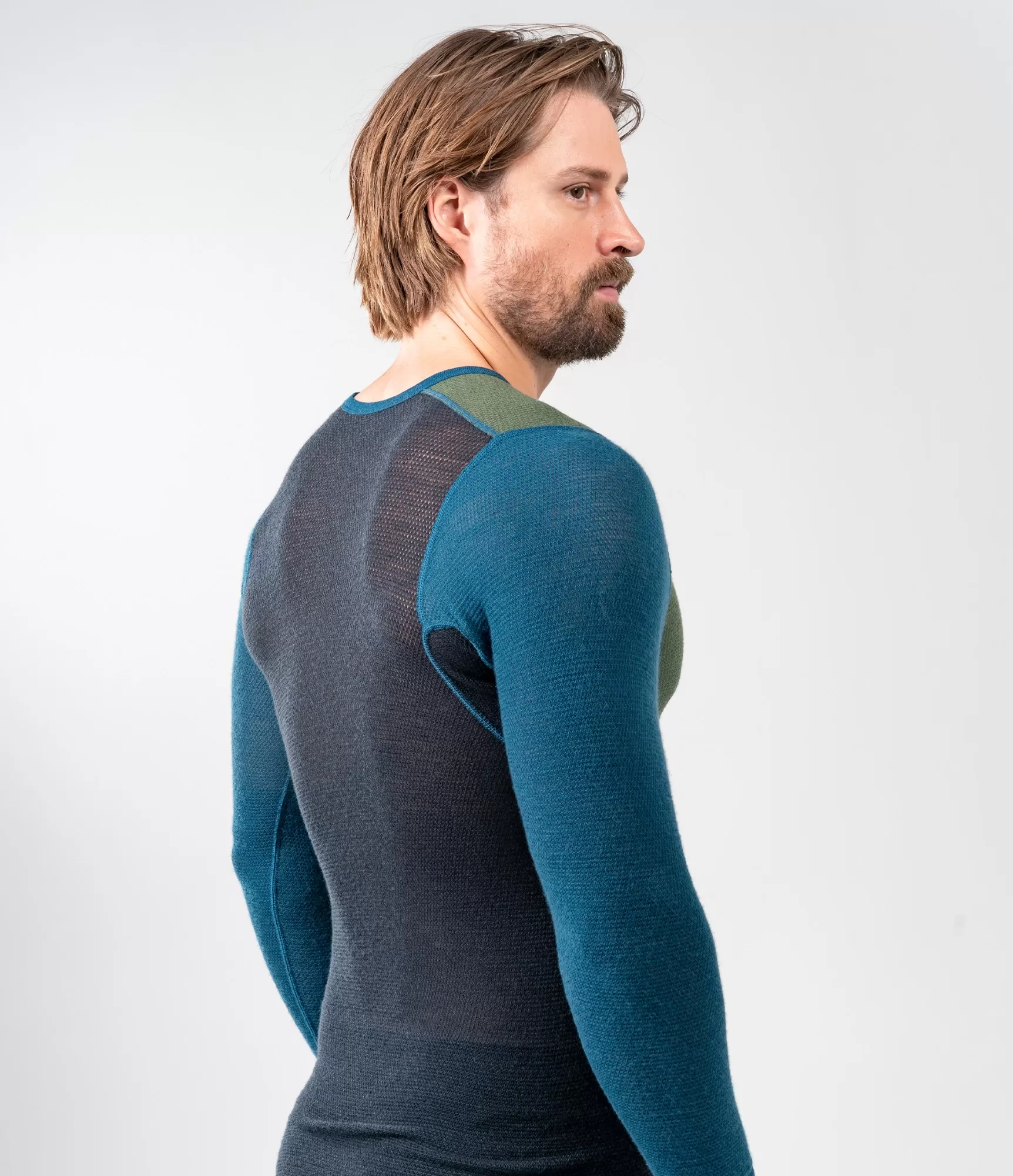 Devold Wool Mesh 190 termokrekls ar garām piedurknēm ir augstākās kvalitātes izvēle vīriešiem, kas meklē uzticamu, dabisku un termoapģērbu, kas pielāgots intensīvai kustībai. Izgatavots no 100% merino vilnas, tas atbilst OEKO-TEX Standard 100 sertificēto produktu kategorijai, nodrošinot pilnīgu drošību ādai un dabiskumu. Šī modeļa blīvums ir 190 g/m², un 18,7 mikronu šķiedra nodrošina izcilu maigumu un elastību.