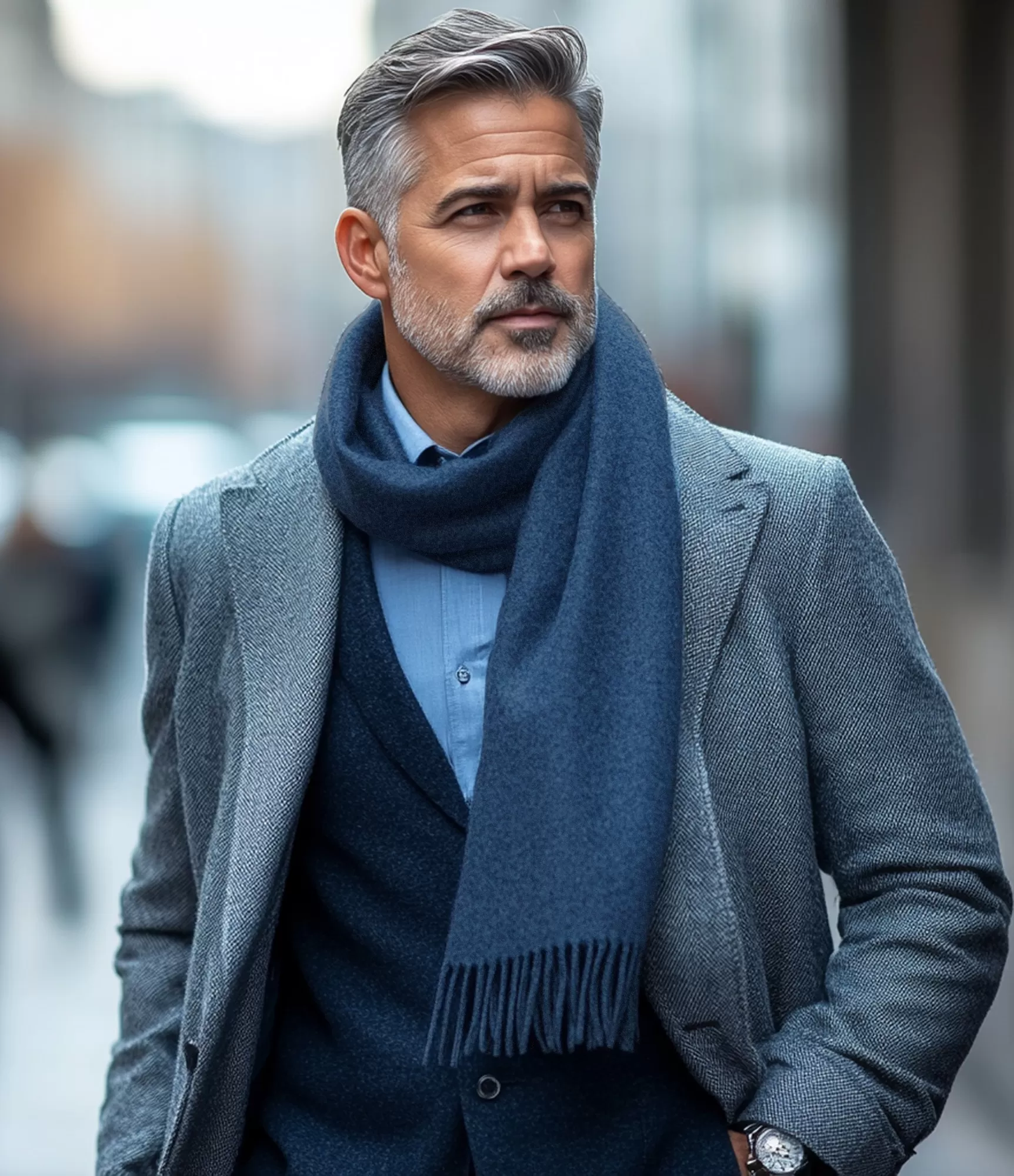 "Deep Ocean Blue" tonis lieliski sader ar tumšu vilnas mēteli, melnu jaku, kā arī estētiski izceļas kopā ar smilšu, pelēkajiem vai tumši zaļajiem apģērbu toņiem. Kombinācijā ar uzvalku šalle piešķir profesionālu izskatu, bet ar džinsiem un džemperi — tīru, vieglu pilsētas stilu. Šī krāsa ir piemērota rudenim, ziemai un agrajam pavasarim, jo saglabā aktualitāti visa sezonas laikā un nepārslogo koptēlu.